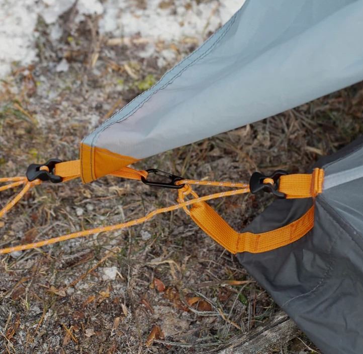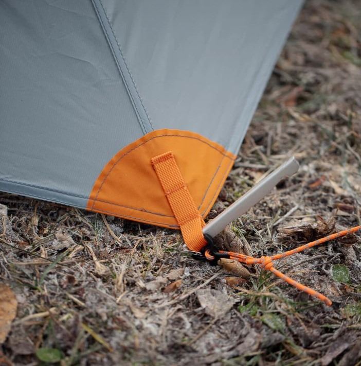 The Absaroka is built to be pitched with an optional single center pole (sold separately) or two trekking poles connected together, and is constructed with our ripstop polyester fabric that won't sag when wet, maintaining the usable space inside the tent. The Absaroka is sewn with a silicone coated thread and double lap-felled seams, making it highly water resistant out of the box.