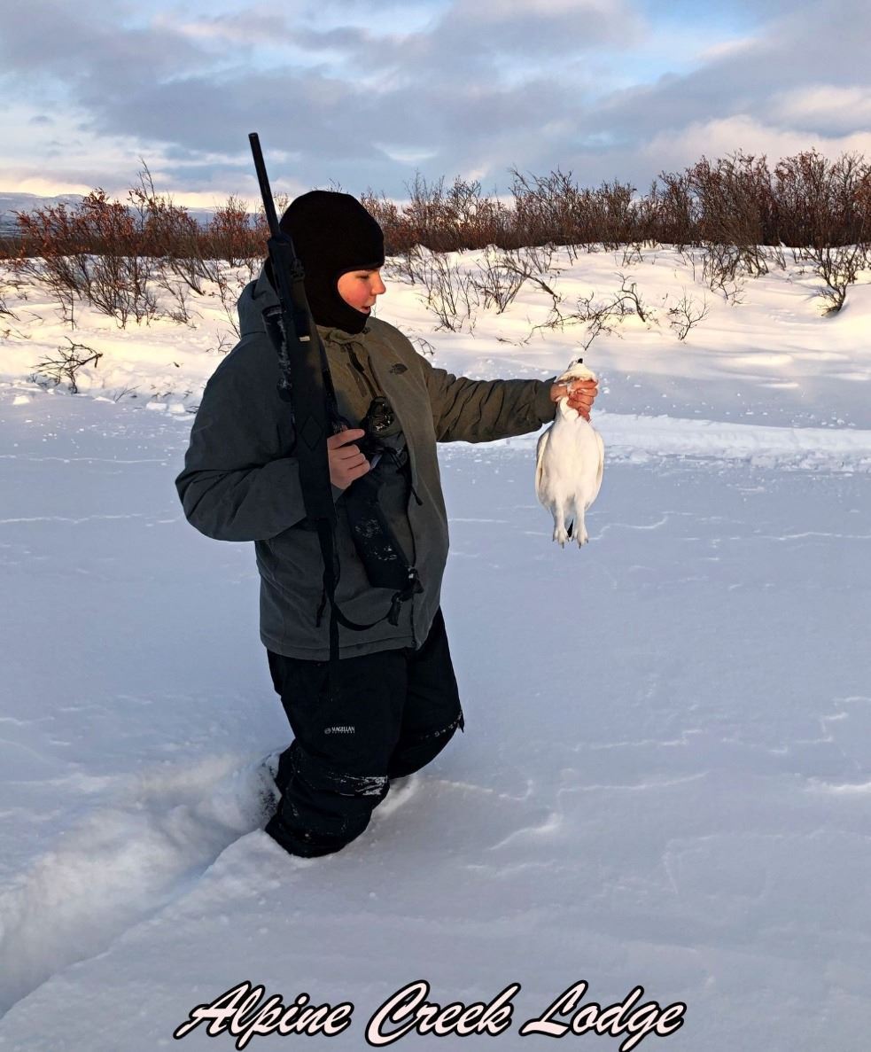 DIY Ptarmigan/Predator Hunting: Ptarmigan hunting at Alpine Creek Lodge is good anytime the season is open. Ptarmigan season is from Aug 10-February 15th. Alpine has a huge number of Willow Ptarmigan, with good numbers of the rarer White-Tailed Ptarmigan and Rock Ptarmigan.