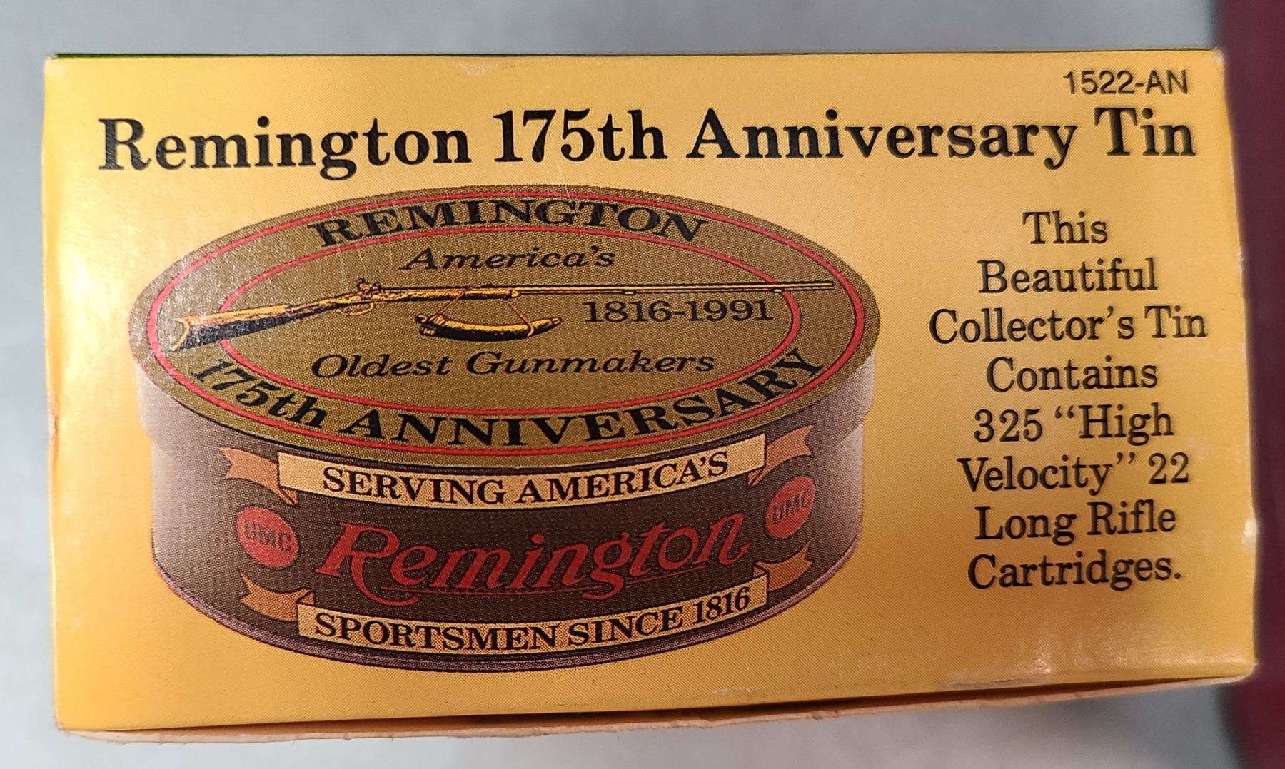 Lot 266 AMMO: COLLECTOR TIN by REMINGTON 175TH ANNIVERSARY .22 lr - 325 rds - MINT CONDITION