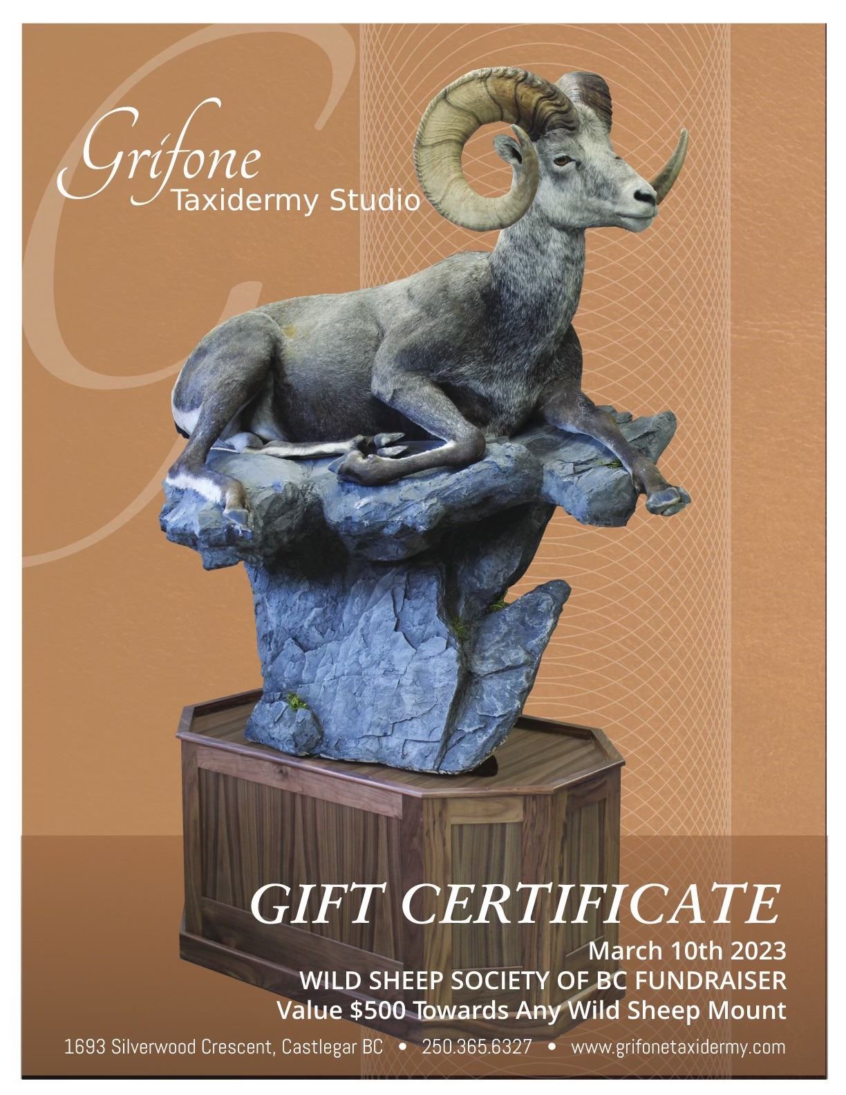 Lot 73 $500 Taxidermy Credit with Grifone Taxidermy Studio