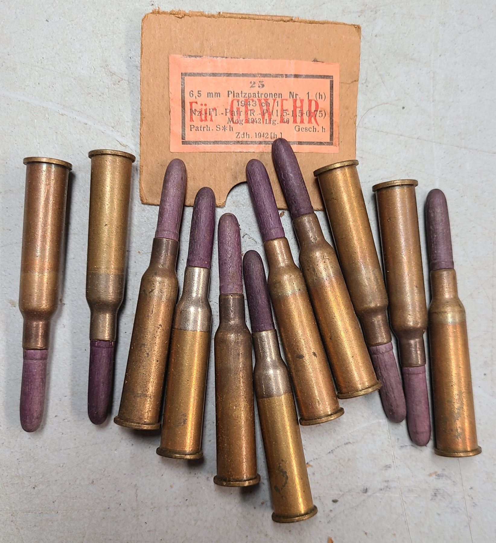 Lot 289 AMMO: 6.5 MM WOOD BULLET ROUNDS 1943 ISSUE WW2 VINTAGE - 11 rds