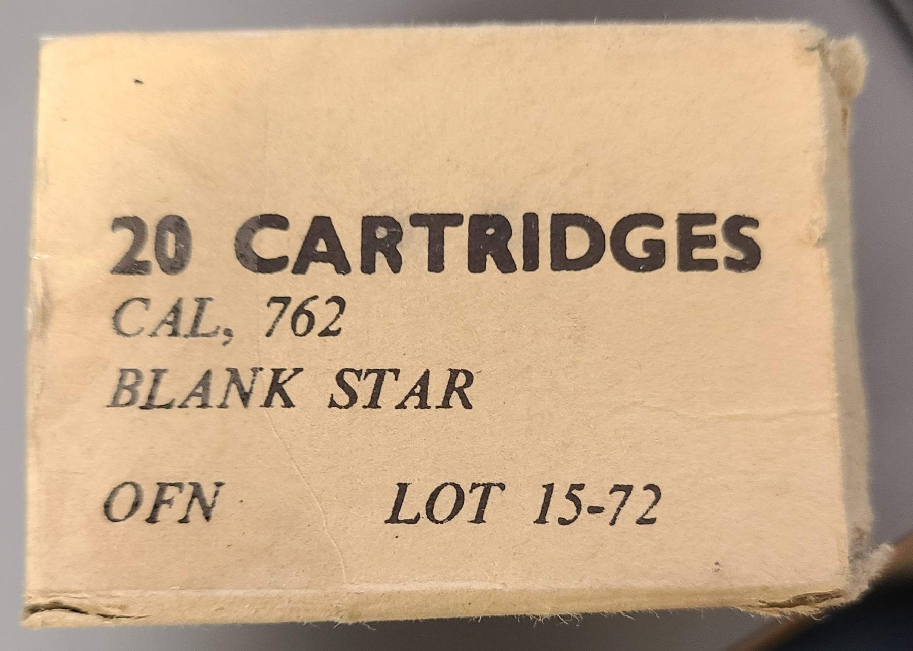 Lot 291 AMMO: 7.62 NATO (308 WIN) BLANKS STAR LOT 15-72 - 1972 VINTAGE - 20 rds