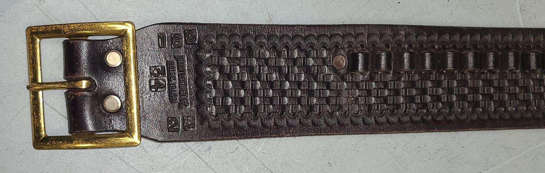 LEATHER BASKETWEAVE IDAHO .22 CARTRIDGE BELT - SIZE 34