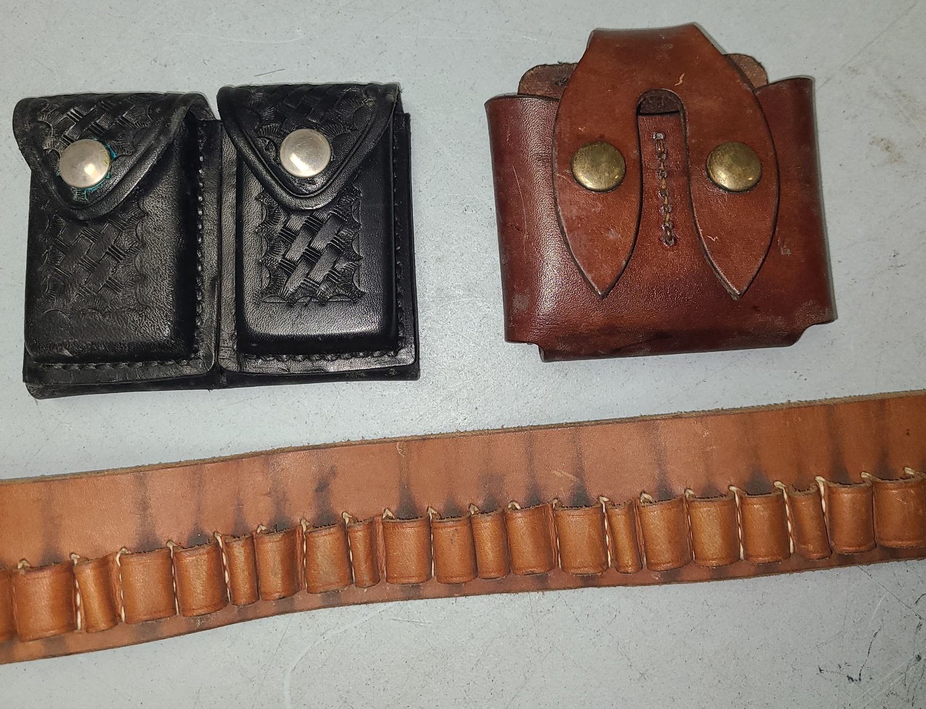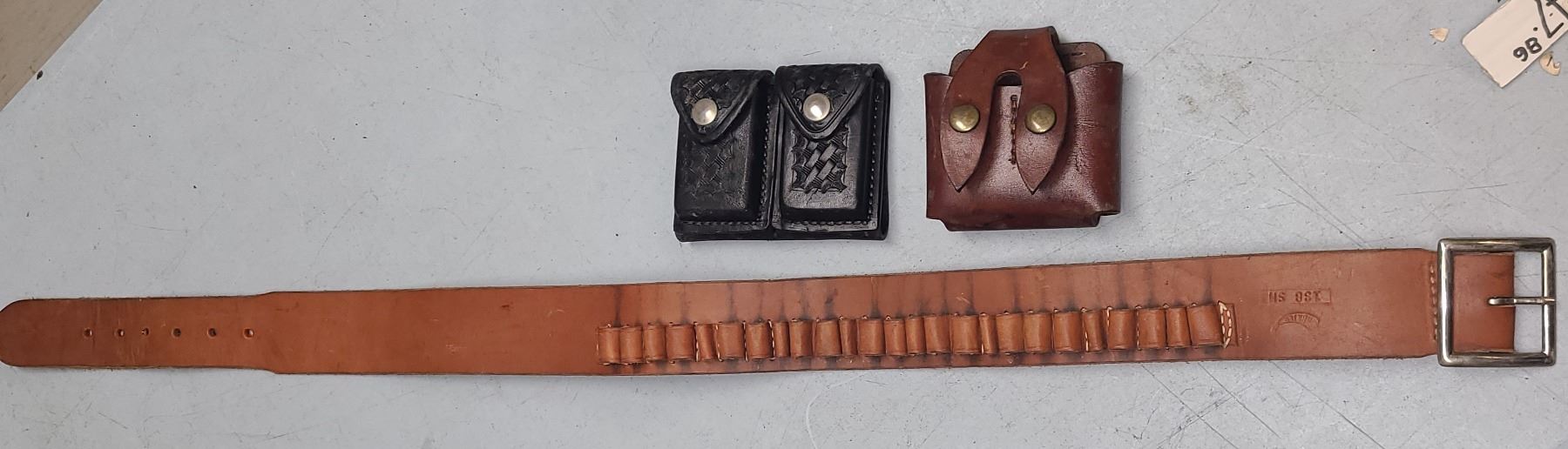 Lot 335 CARTRIDGE BELT by HUNTER SZ S + 2 LEATHER MAG POUCHES S&W
