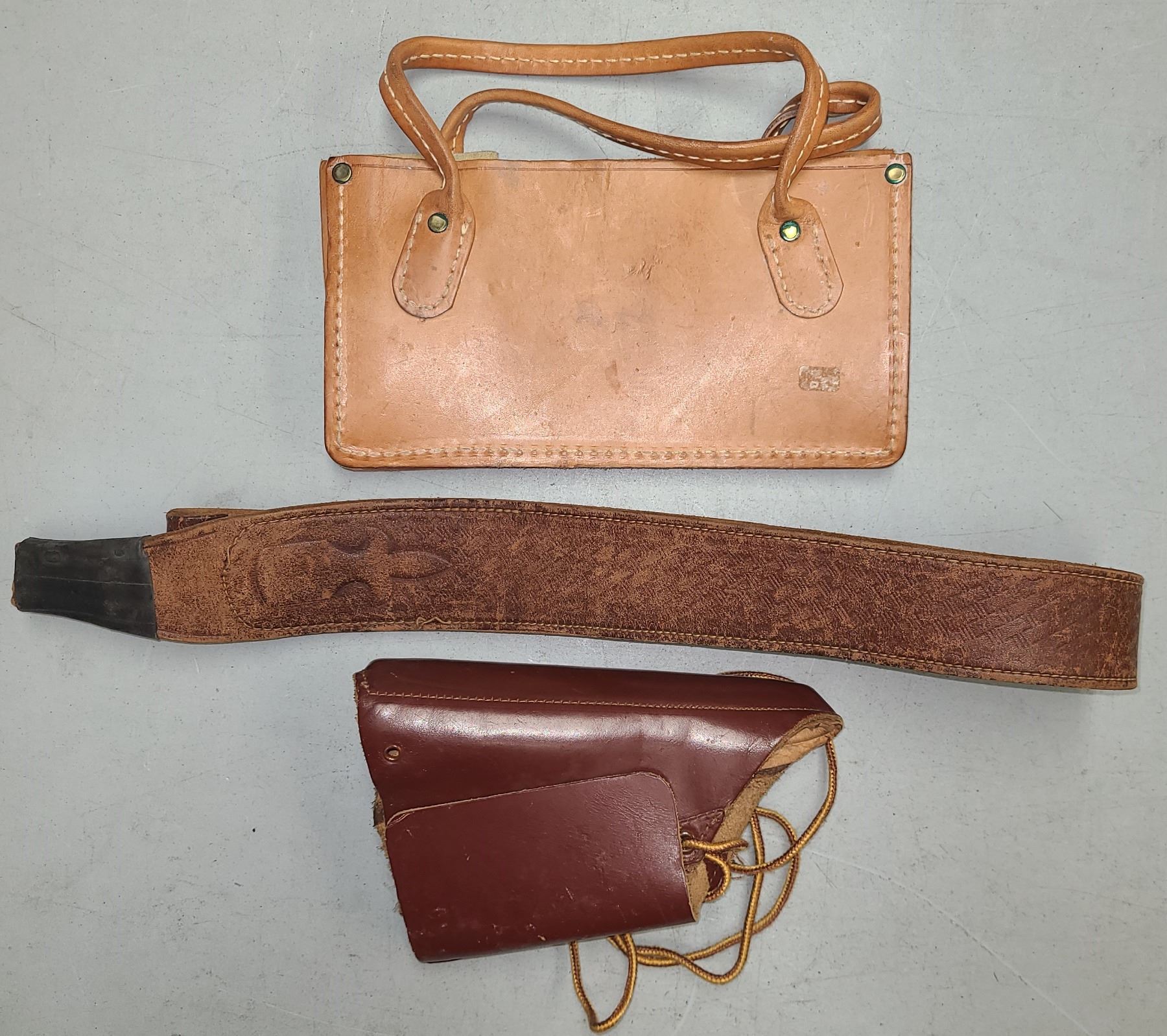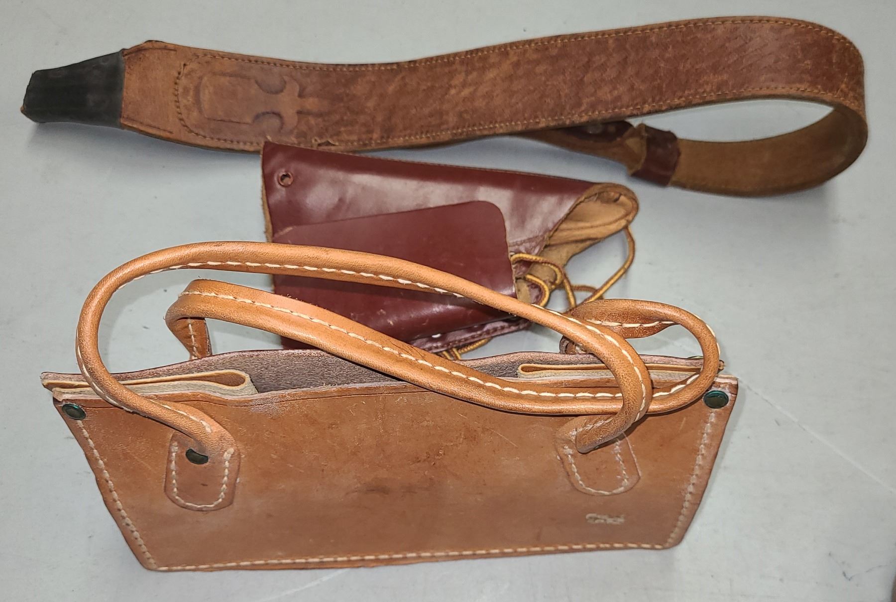 Lot 336 LEATHER SLING - CHEEK RISER - SHOTGUN HULL BAG - ALL LEATHER