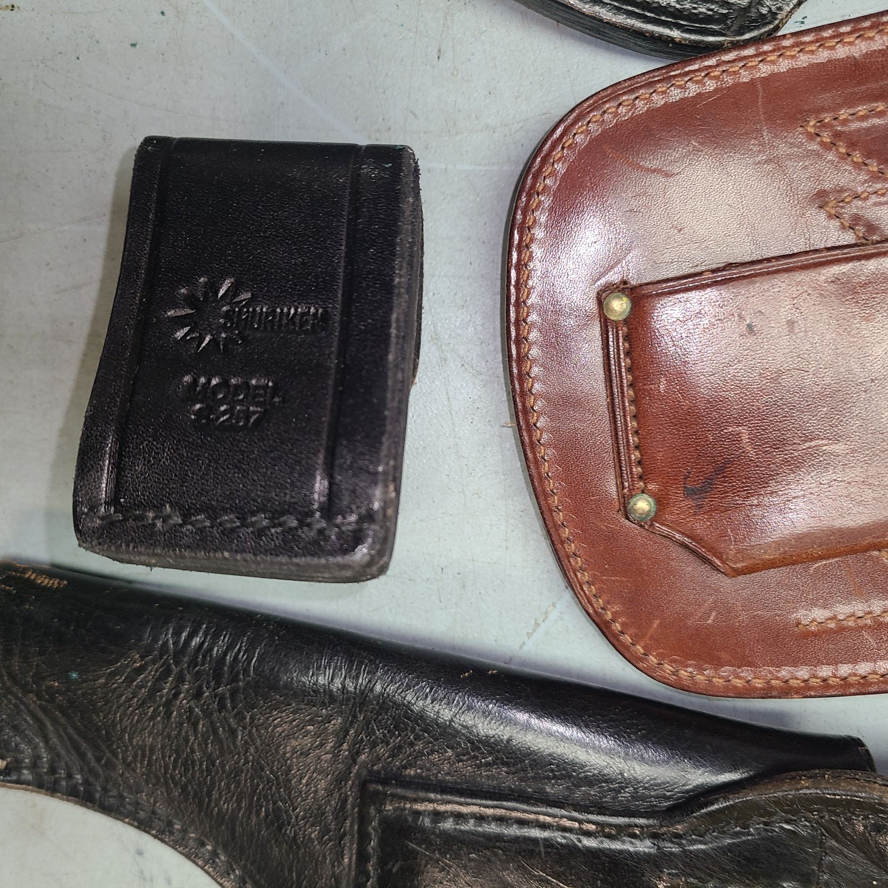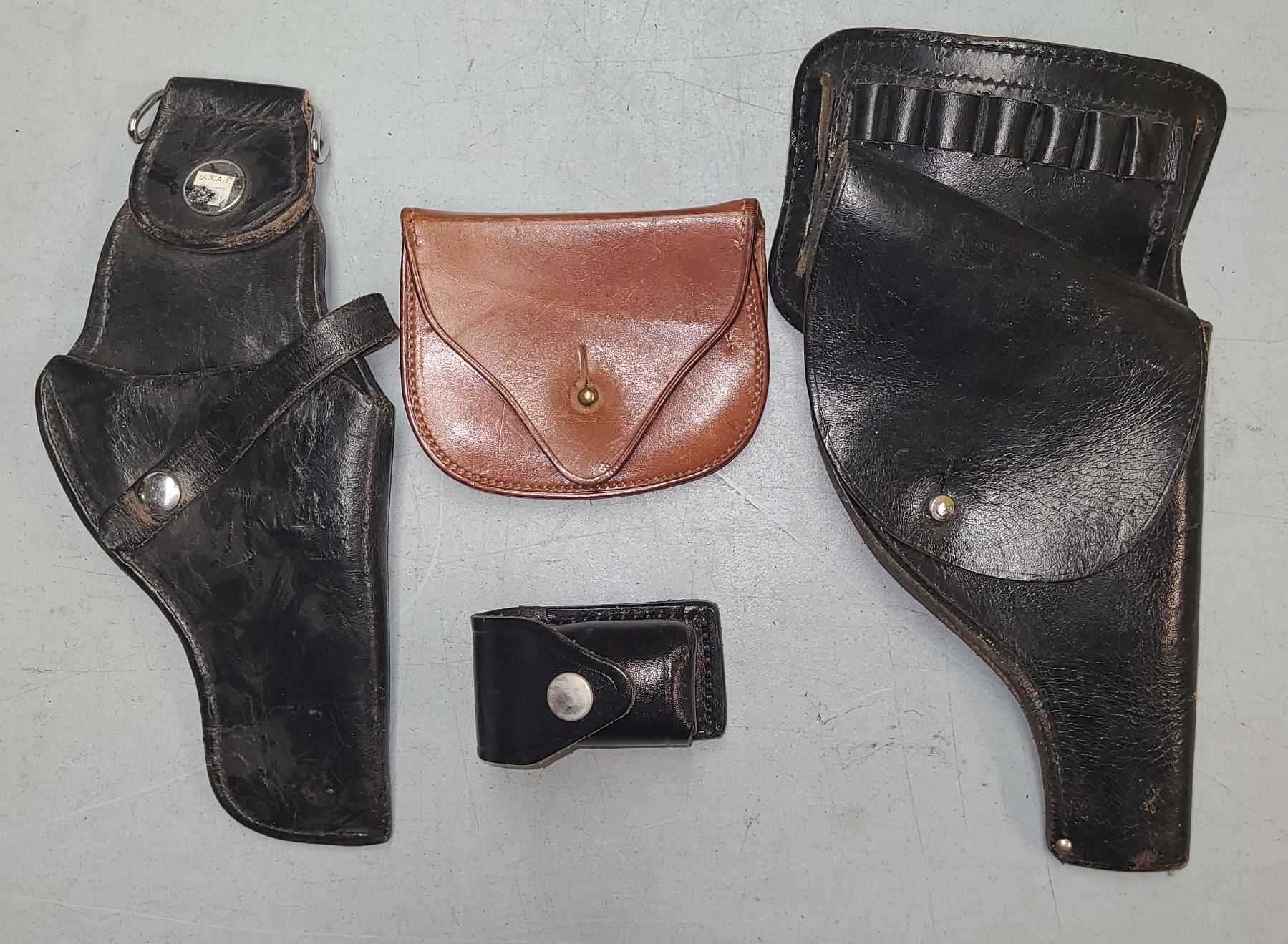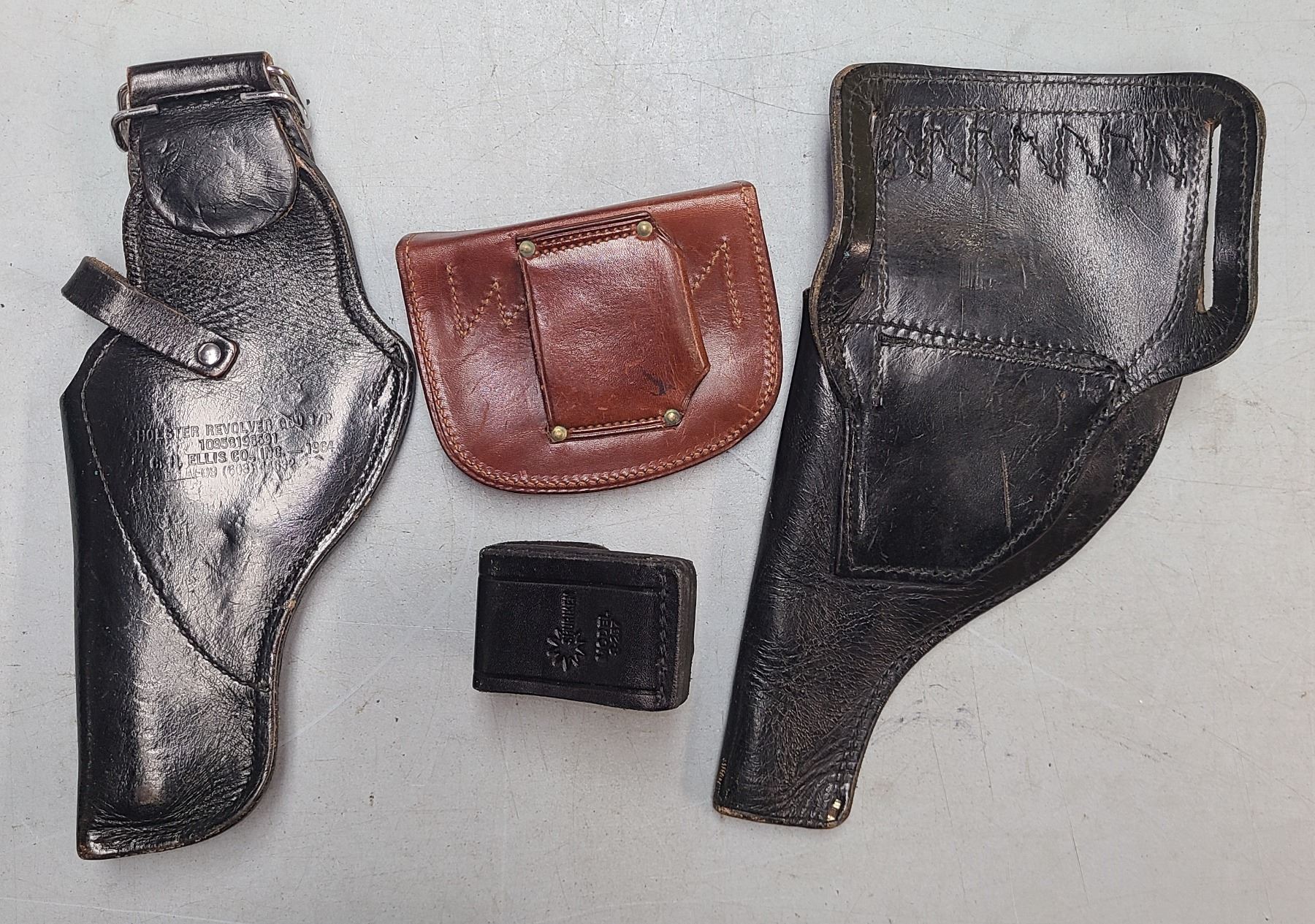 Lot 345 2 X HOLSTERS US MILITARY + 2 MAG POUCHES LEATHER