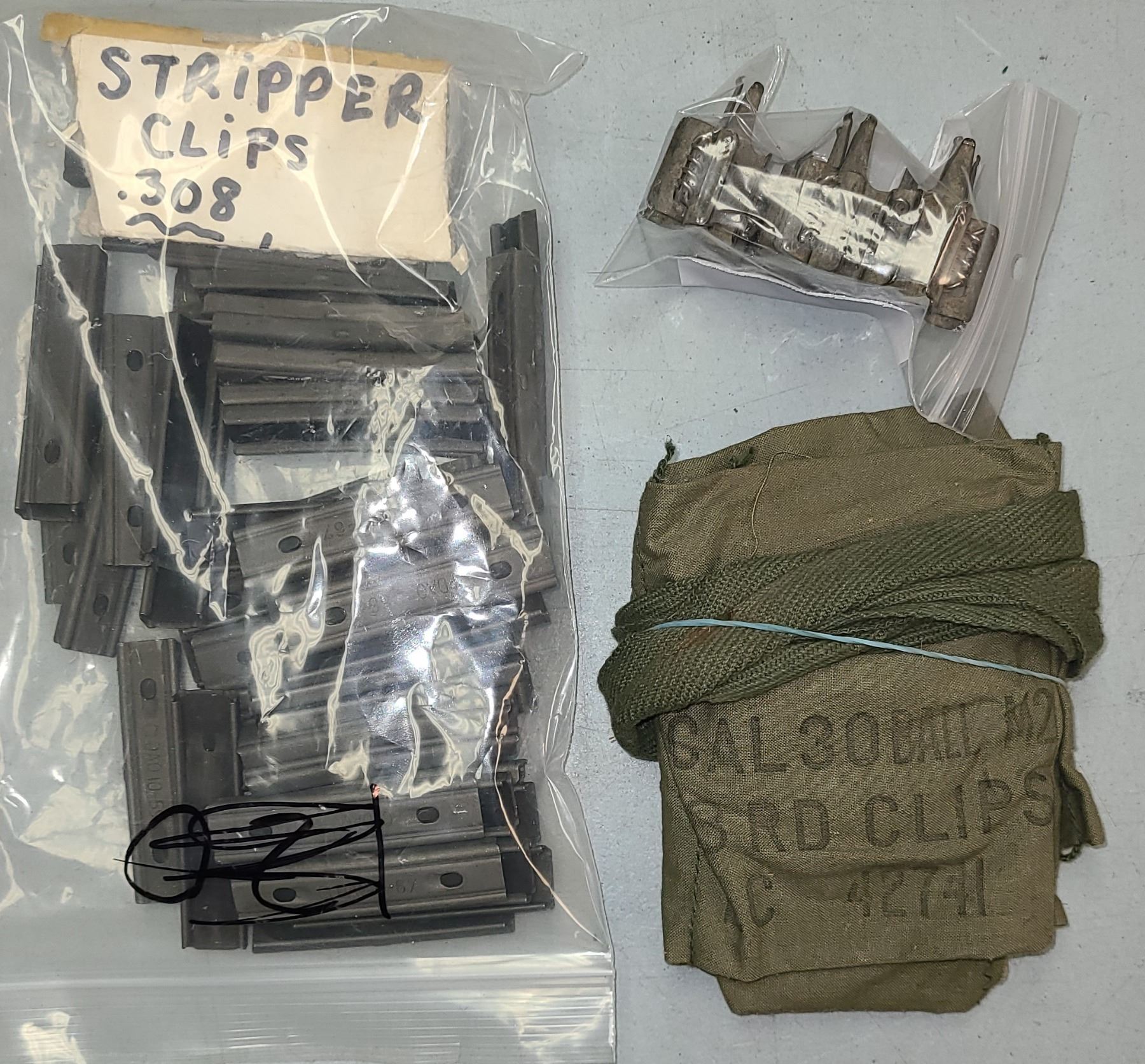308 STRIPPER CLIP LOT + MACHINE GUN CLIPS AND POUCH.