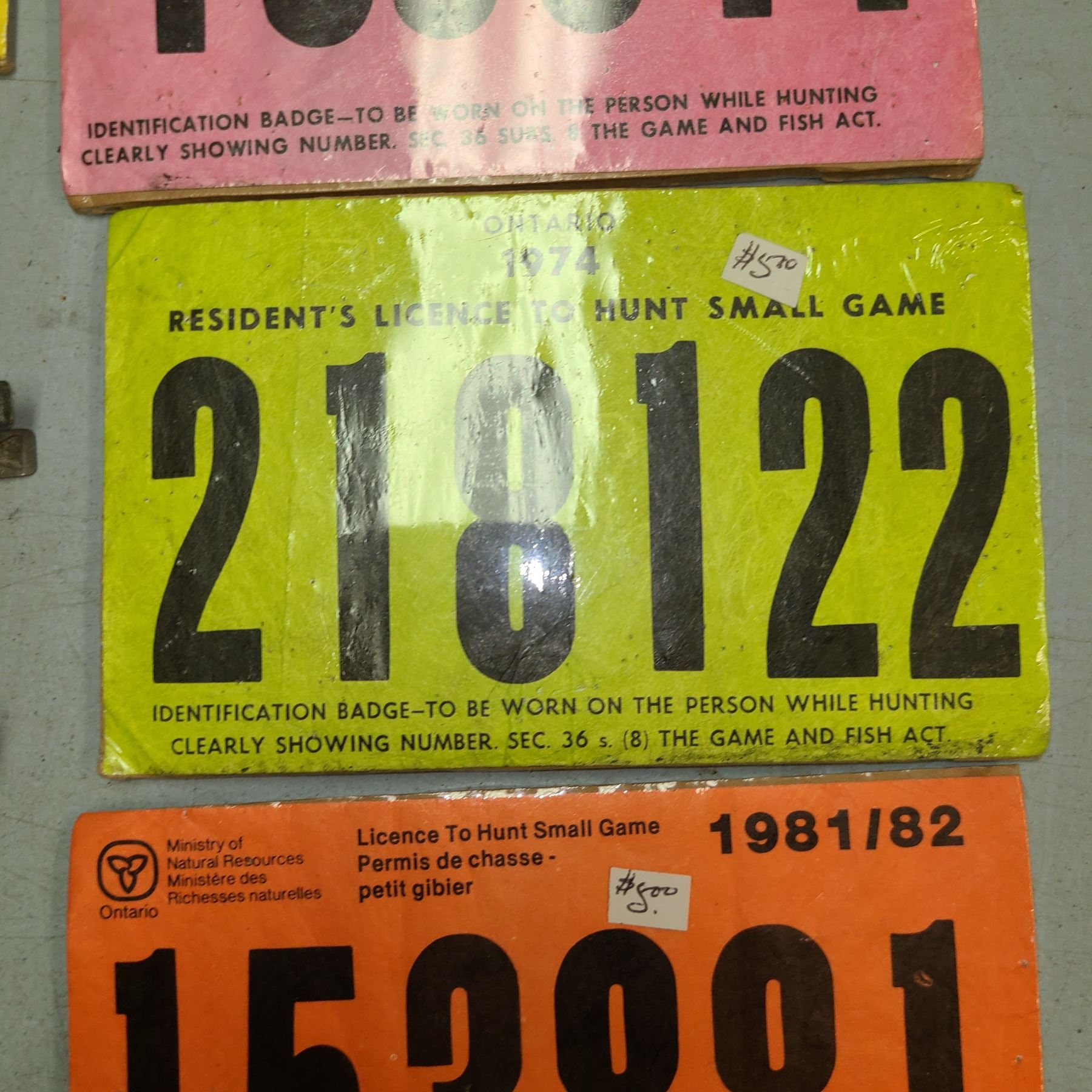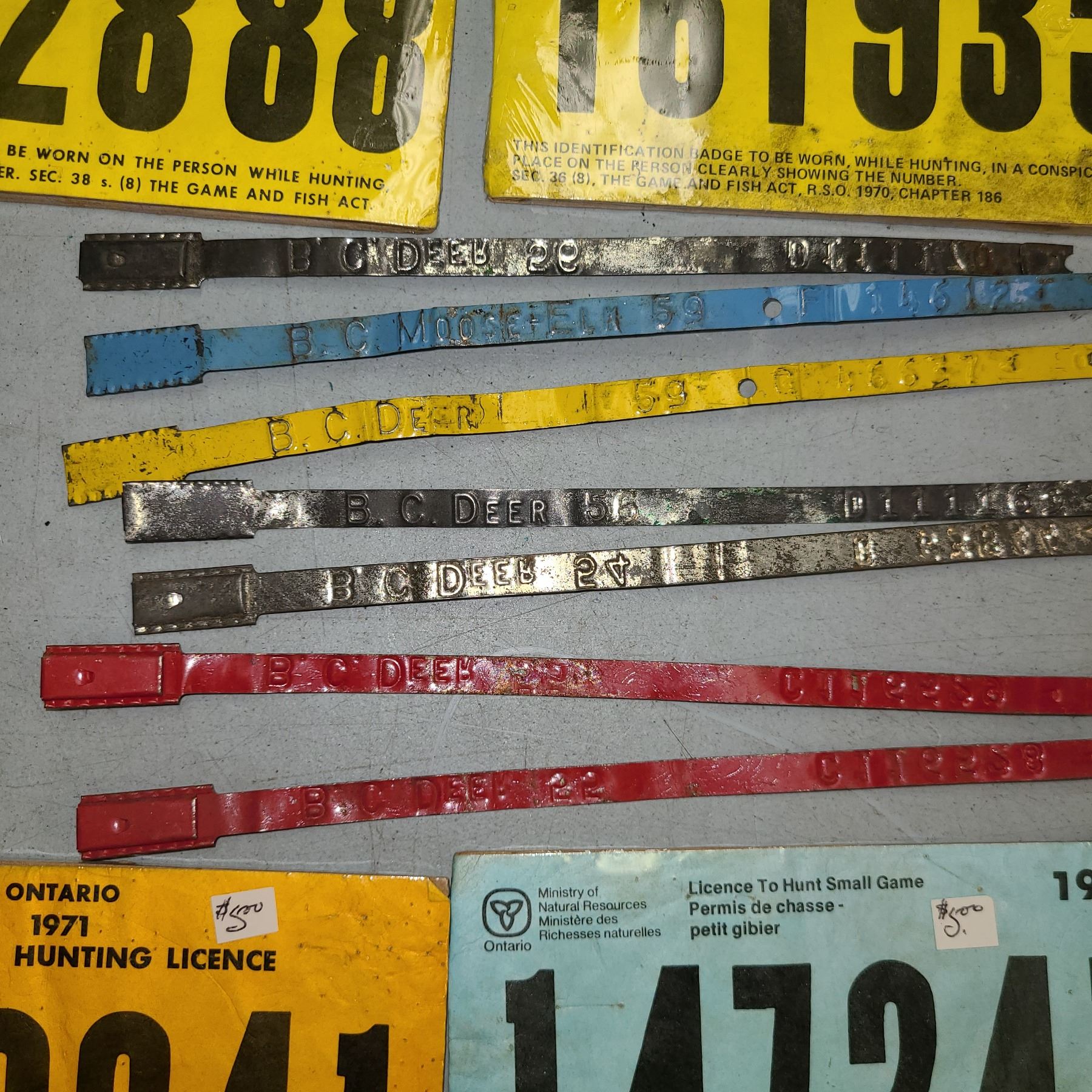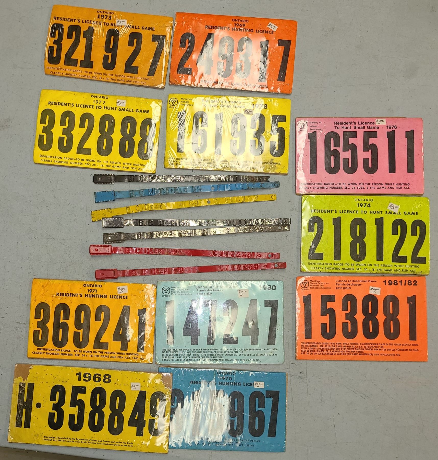 Lot 400 VINTAGE HUNTING TAGS CANADA - LOT OF 18 - 1968 TO 1982