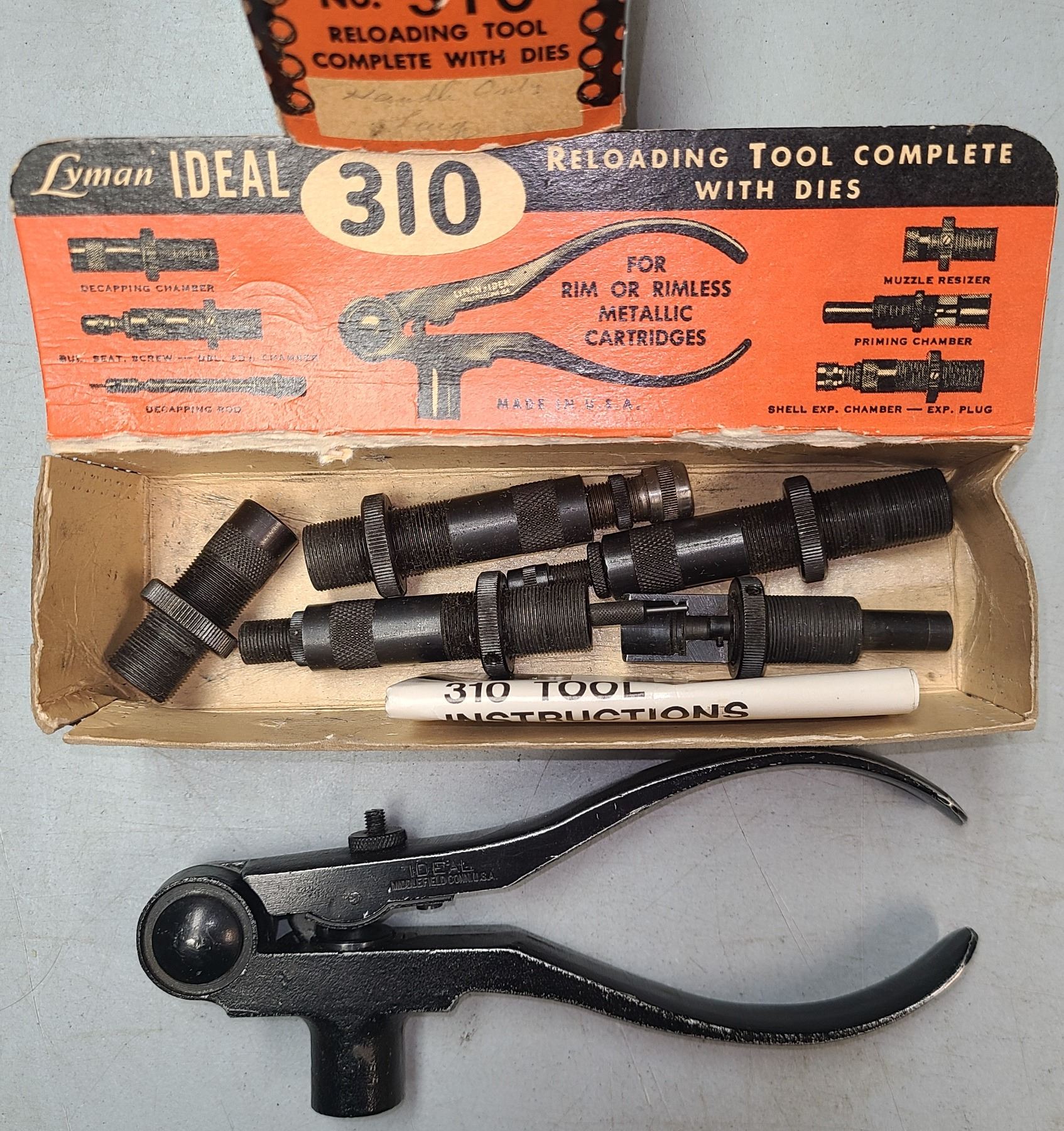 LYMAN IDEAL 310 RELOADING TOOL - VINTAGE COMPLETE WITH 6 DIES..