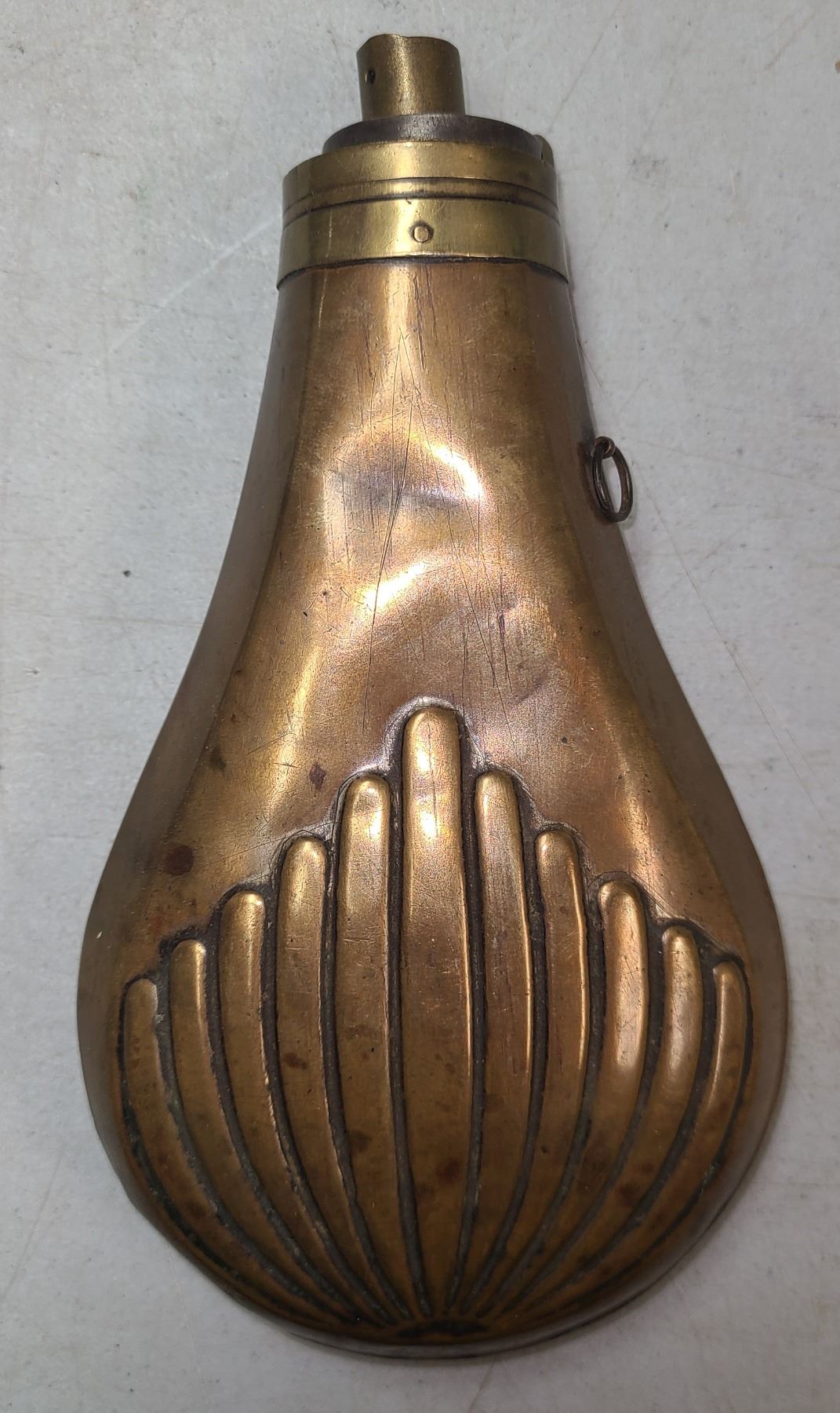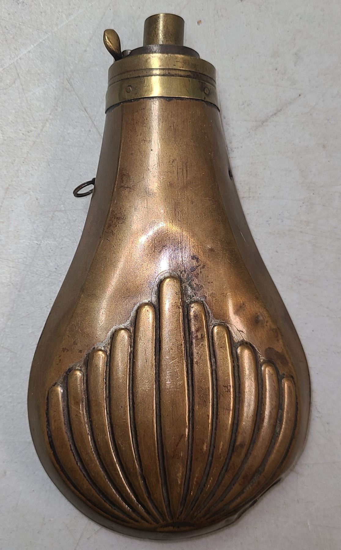 Lot 415 VINTAGE METAL POWDER FLASK AS SHOWN..