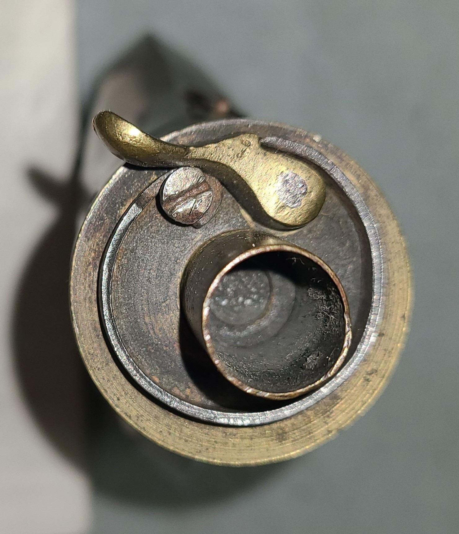 VINTAGE METAL POWDER FLASK AS SHOWN..