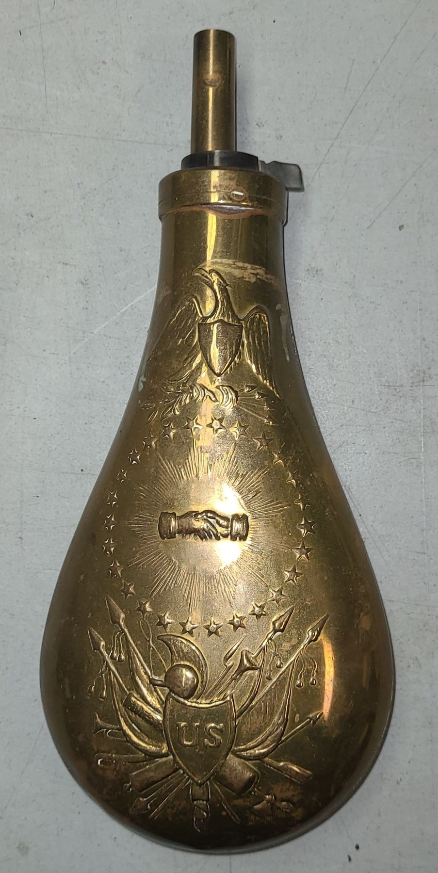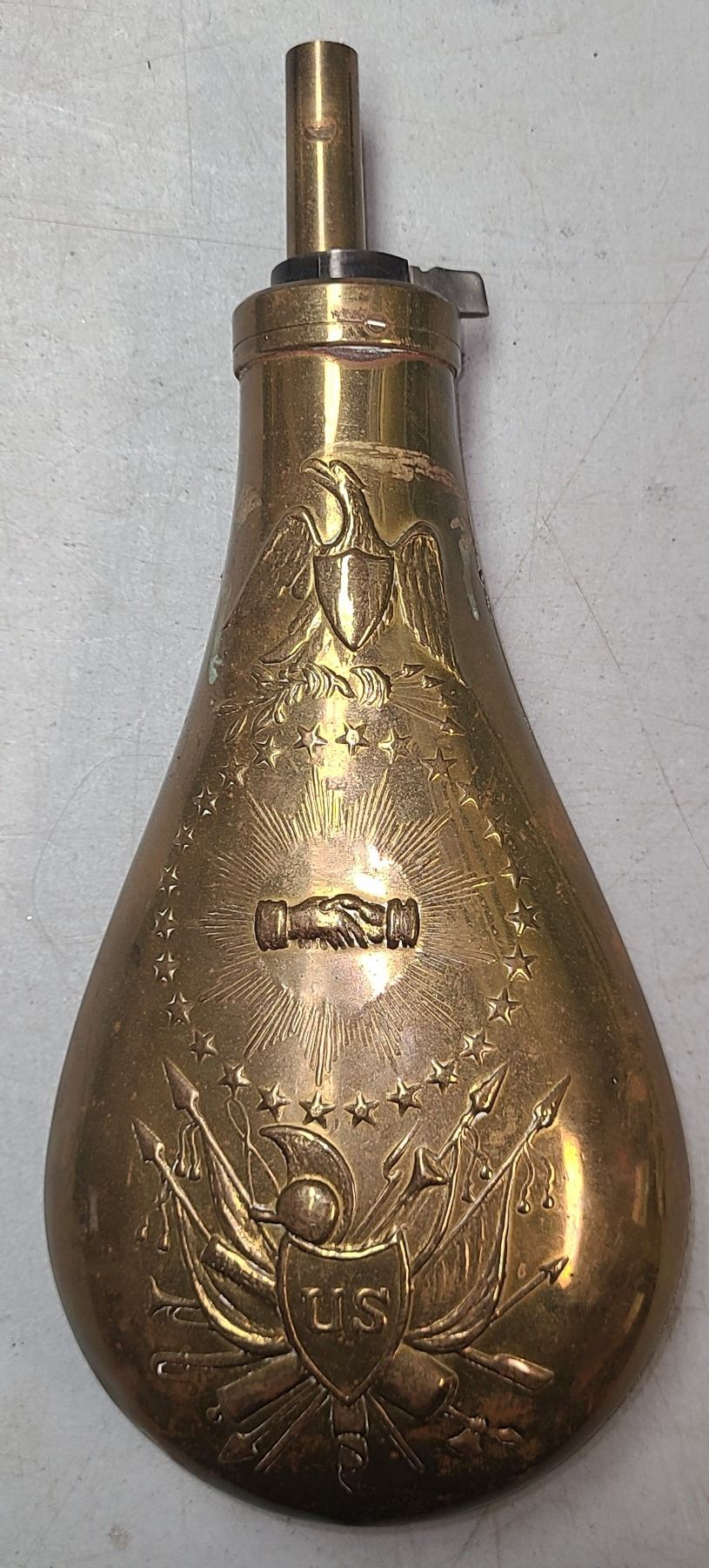 Lot 416 VINTAGE METAL POWDER FLASK AS SHOWN..