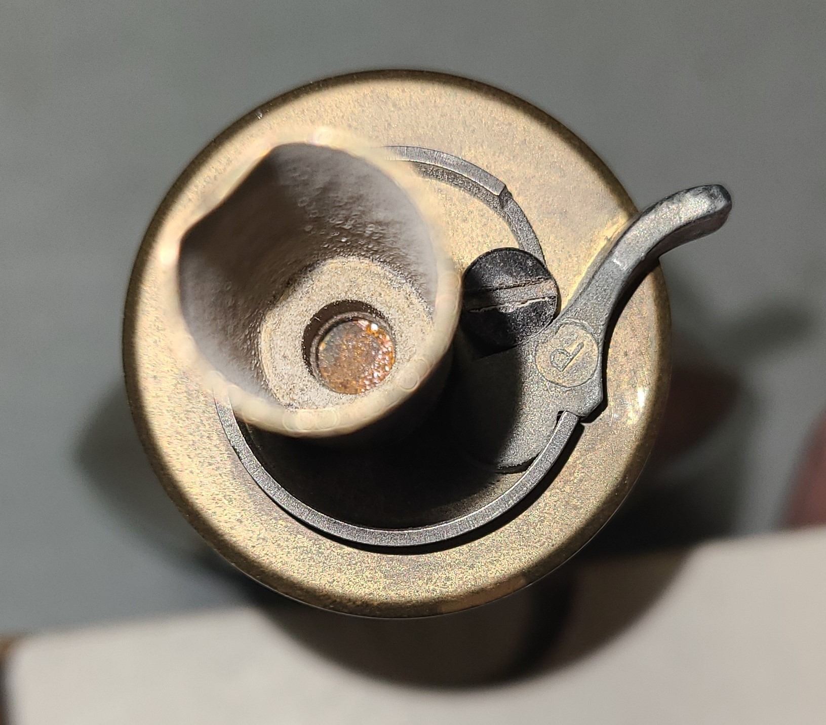 VINTAGE METAL POWDER FLASK AS SHOWN..