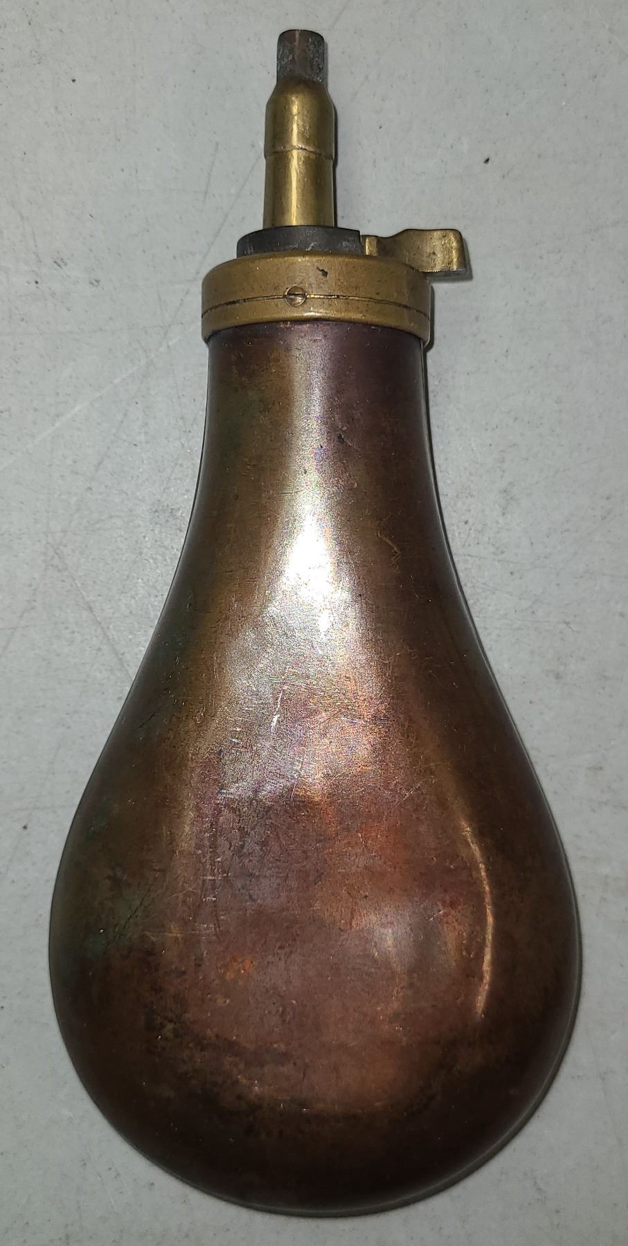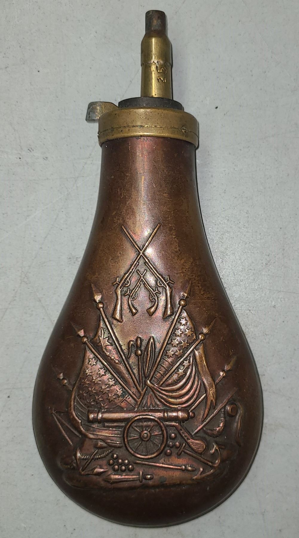 Lot 420 VINTAGE METAL POWDER FLASK AS SHOWN..