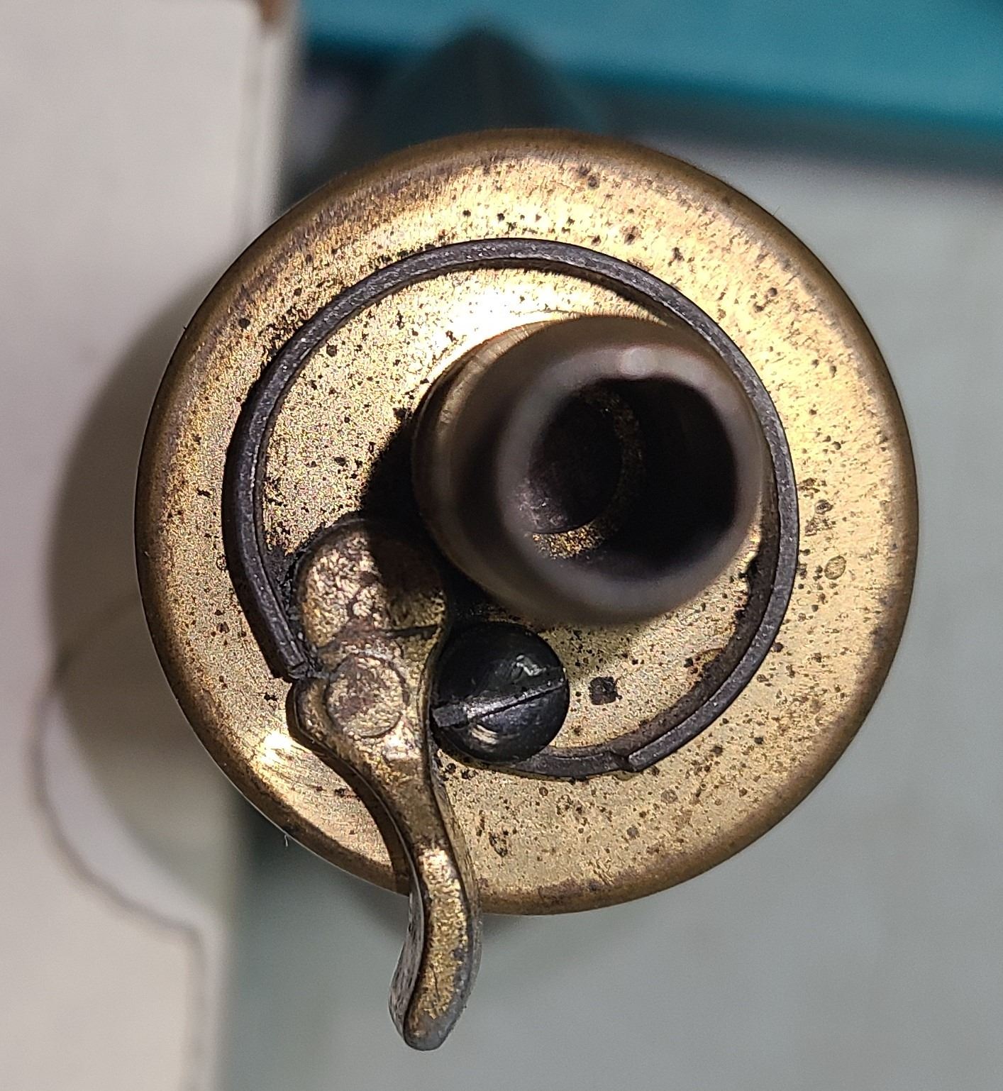 VINTAGE METAL POWDER FLASK AS SHOWN..