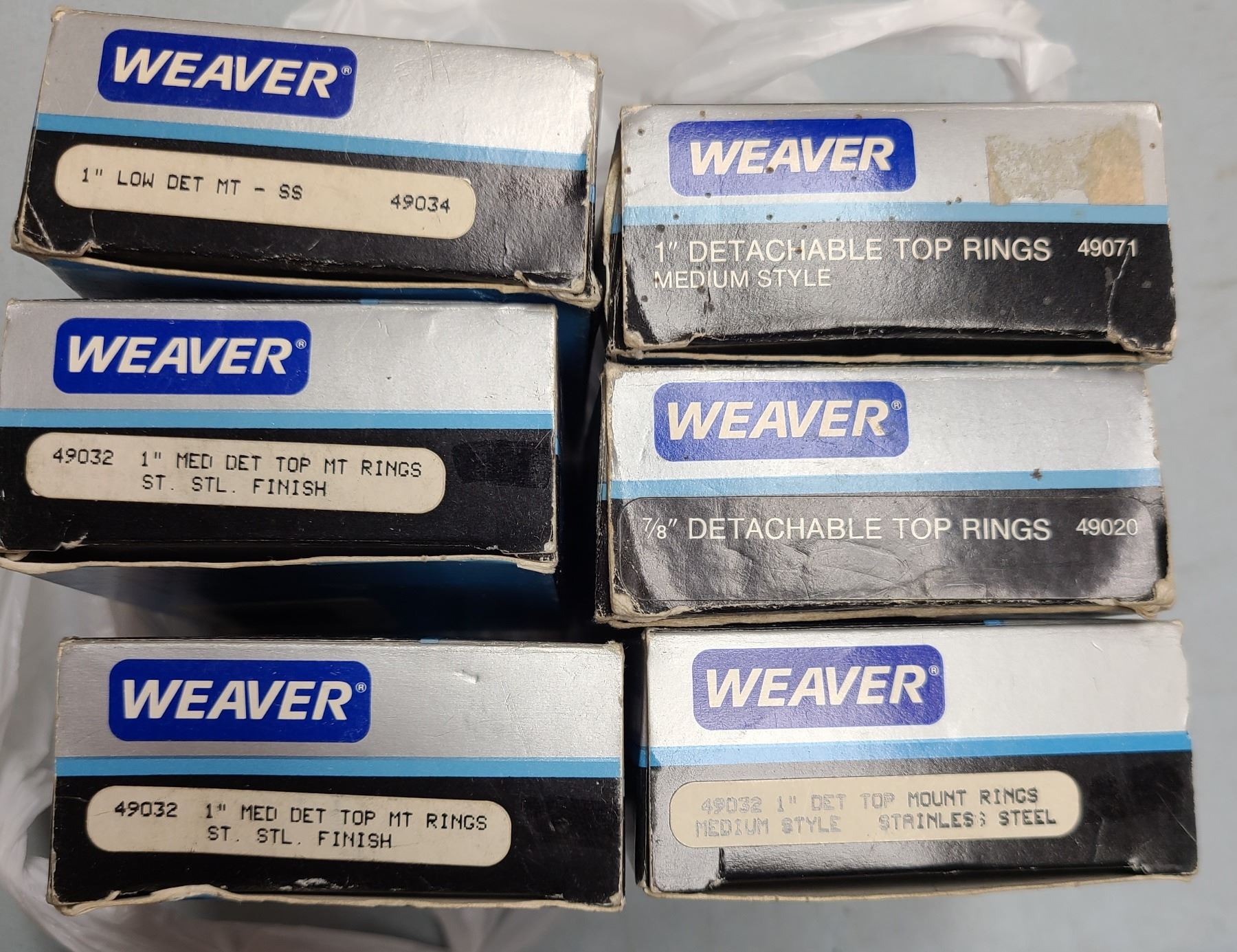 6 SETS WEAVER SCOPE MOUNT RINGS - VARIOUS TYPES AS SHOWN