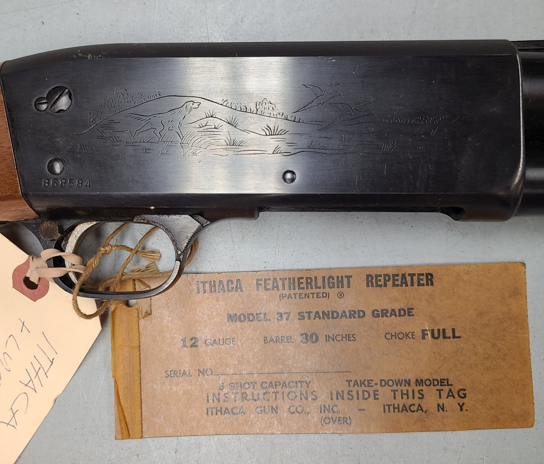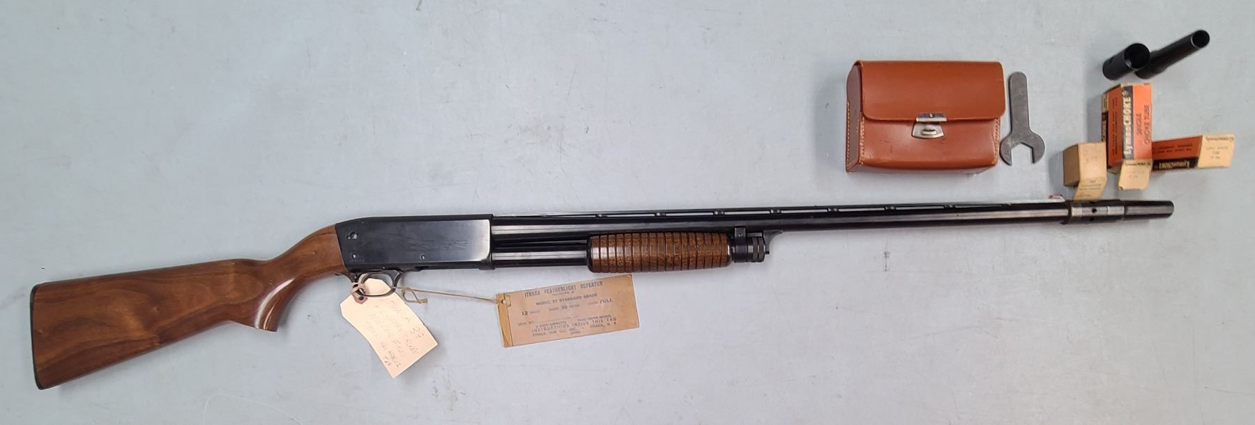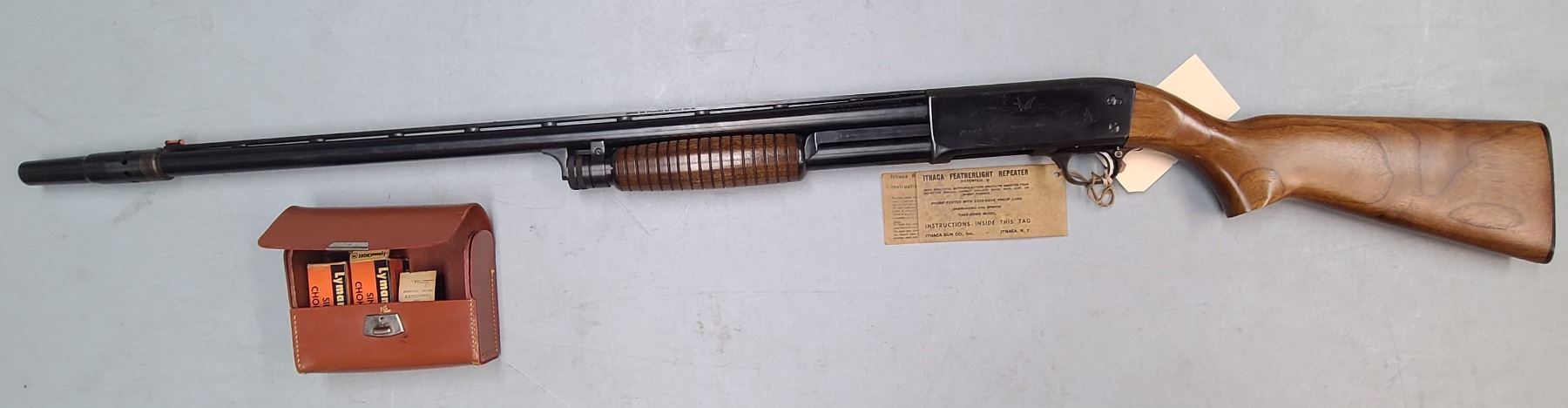 Lot 126 ITHACA MODEL 37 PUMP ACTION 12 ga SHOTGUN c/w CHOKE SET by LYMAN - NEVER FIRED !!
