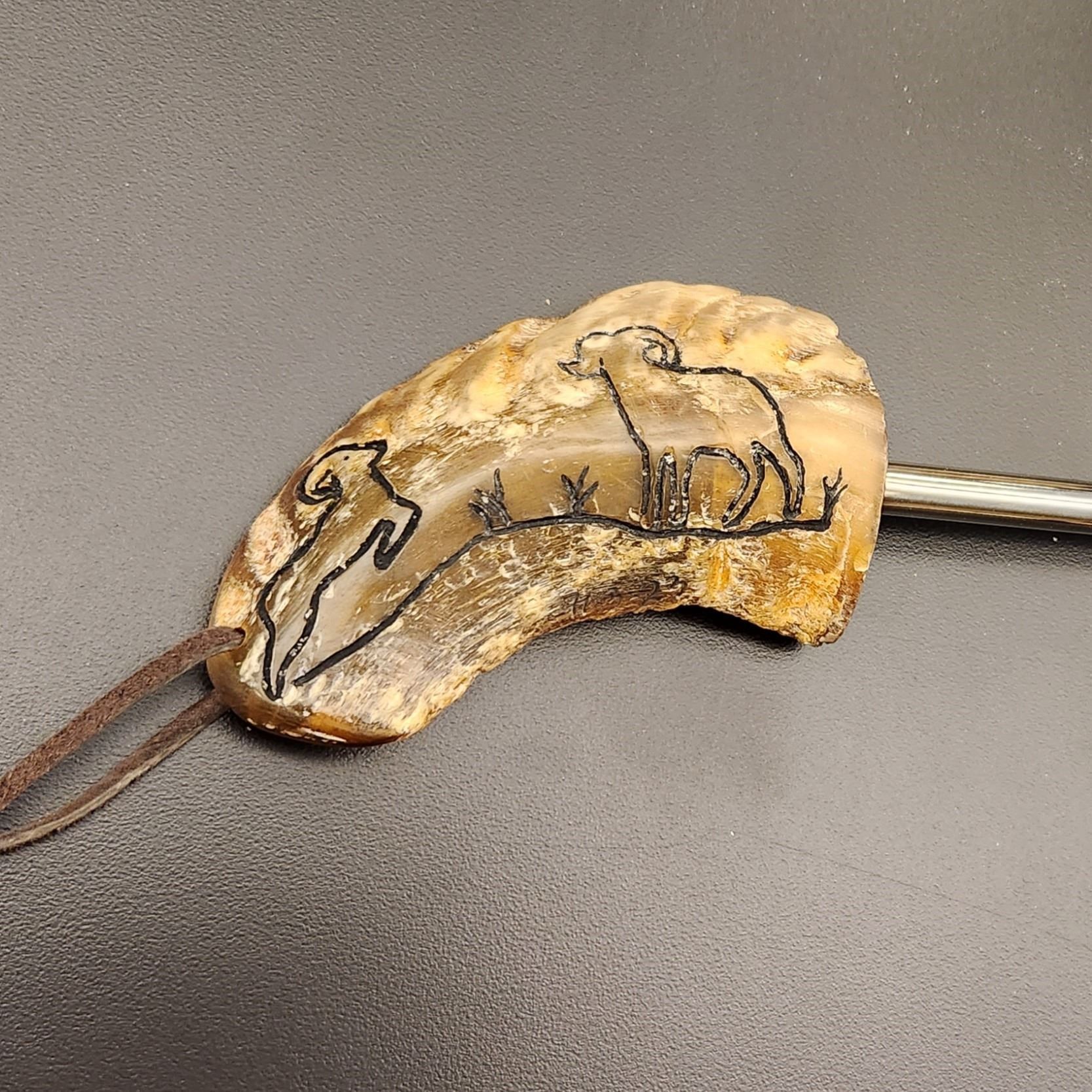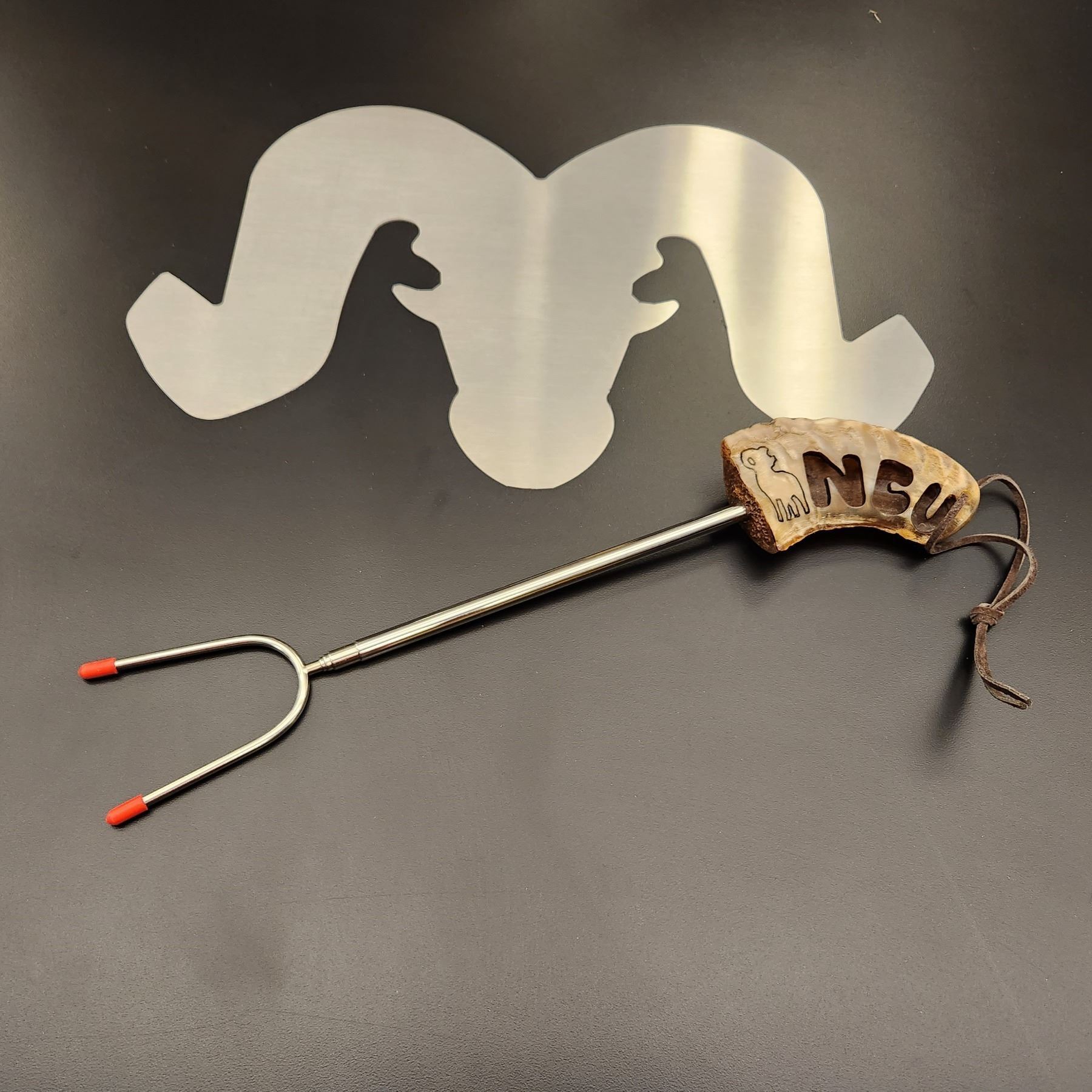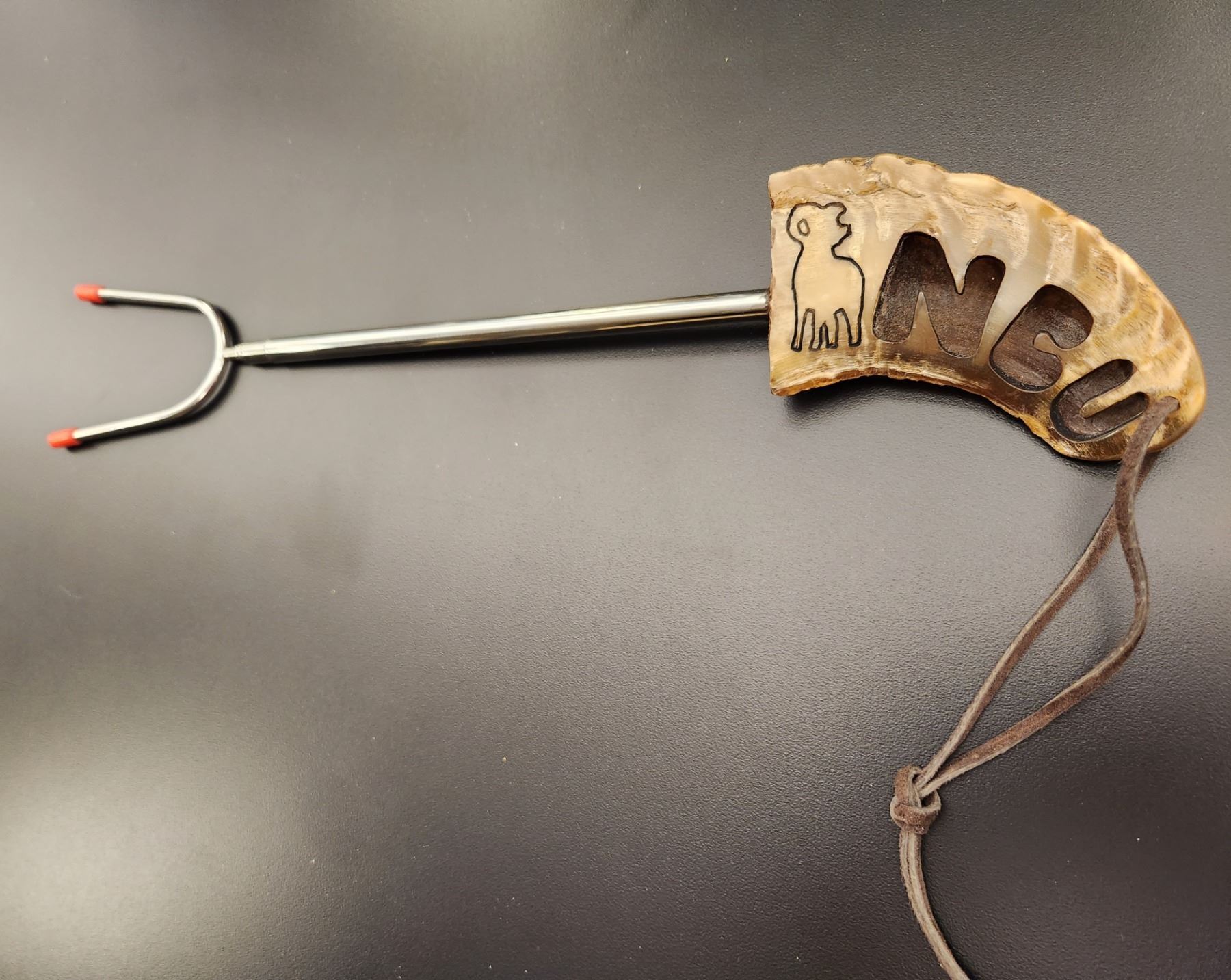 Custom carved NBU sheep horn barbecue fork: NBU 3 Sheep custom carved sheep horn grill utensil