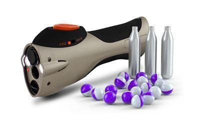 PepperBall, MOBILE, Pepper Ball Launcher, Black w/Gray Accents, 3 Rounds, 350 Lumens, Laser, 5 Live SD Projectiles, 10 Inert Projectiles, 3 Co2 Cartridges, 3 AAA Batteries, Lanyard