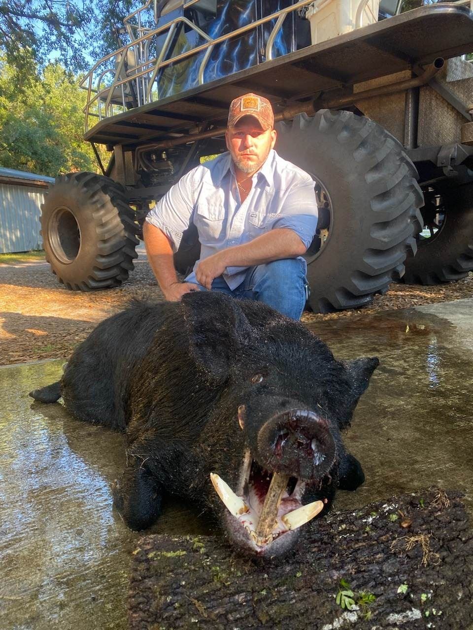 on a 3500-acre free range ranch (4 hour hunt). This is not a depredation or high volume hunt. You will spot and stalk hogs. The second night is riding in trucks and side by sides looking for the hogs. Included will be 1 trophy hog over 200lbs.