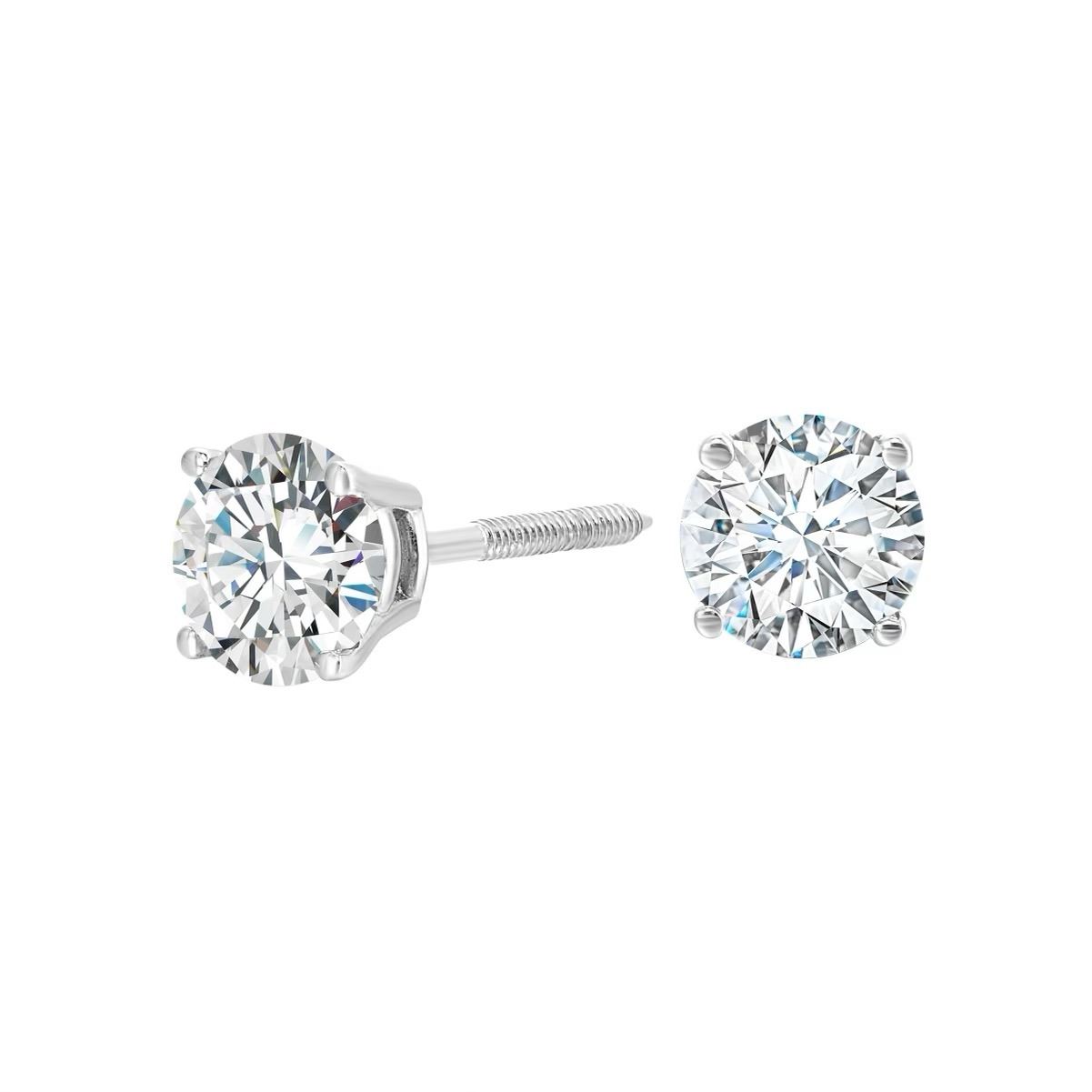 14K White Gold & Diamond Earrings, 1.50Cttw Clarity SI1 Color G (Screw backs)