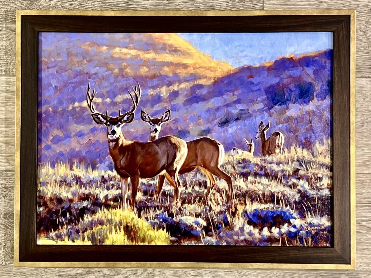 According to the world renowned artist, John Banovich, "This is the first painting I’ve created that was based on simply a feeling and memories of hunting with my father as a young boy in the Rocky Mountain west. I just remember so fondly all those great times in the wilderness with my father and something that millions of people can remember hunting with their family. It’s such an important activity that fosters appreciation for nature and spending time with people that we love." This is a signed and numbered giclee, number 22 of an edition of only 75, professionally framed to complement the beautifully subtle colors in this giclee. A signed Certificate of Authenticity is included. The framed size is 25" X 19". We thank John Banovich for this generous donation.