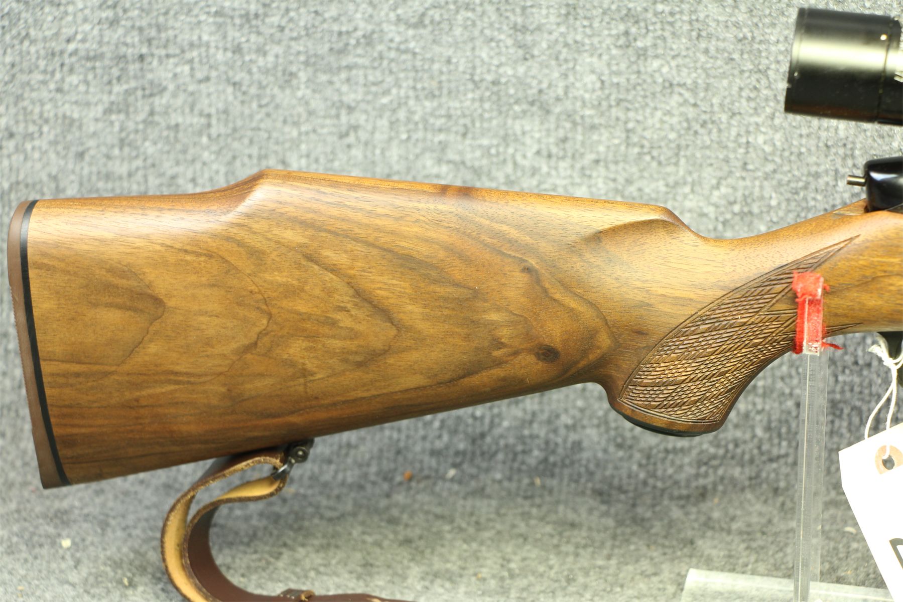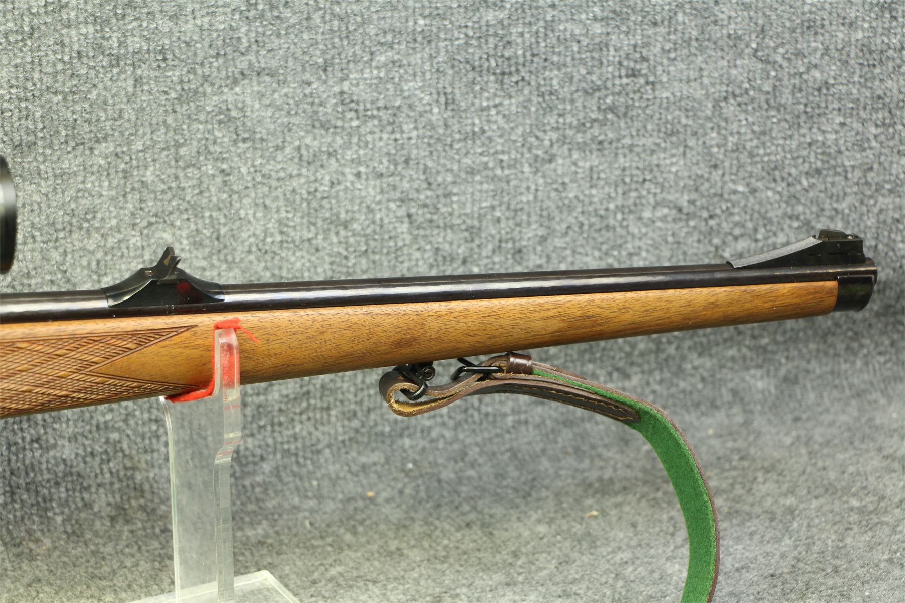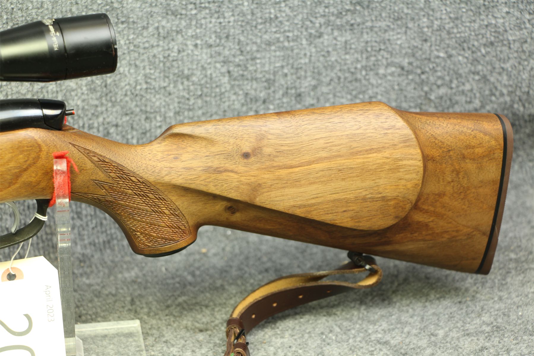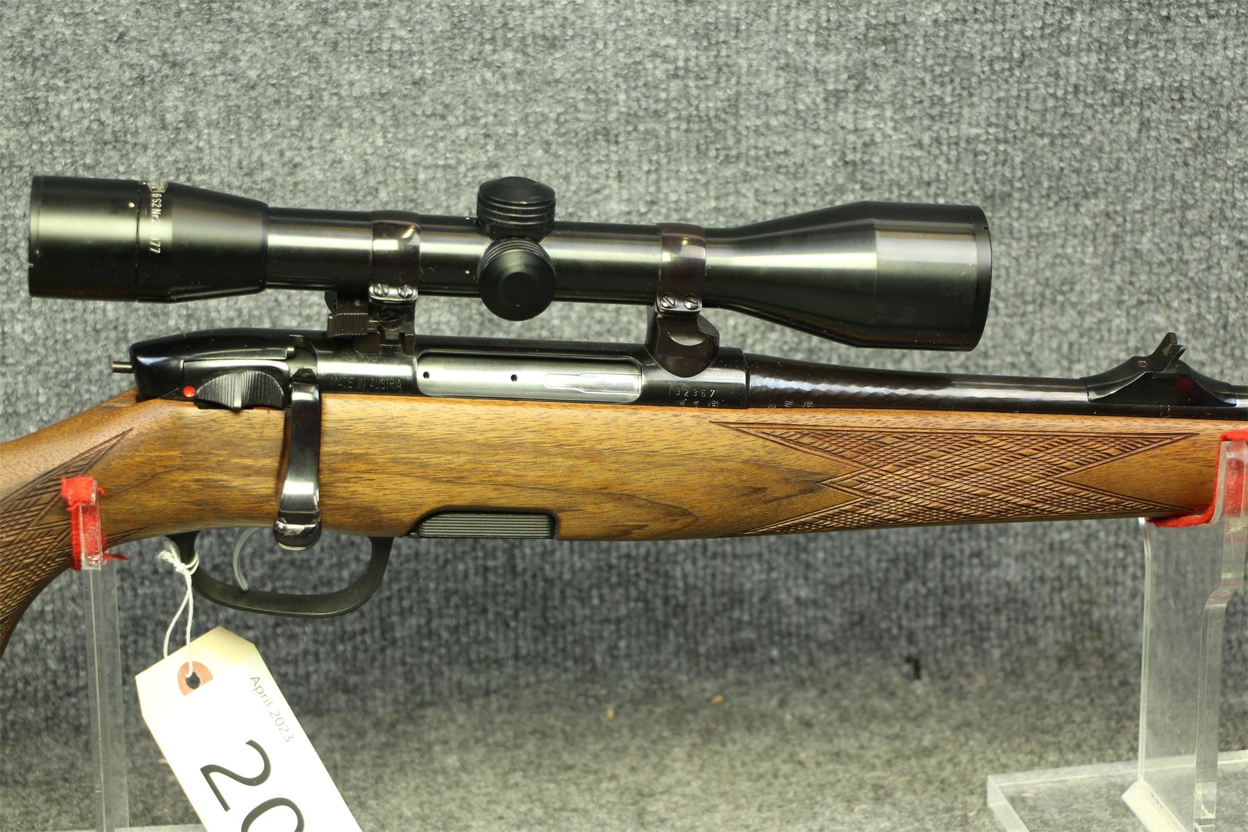 In out of the box condition. Not a mark on her. Oiled dark walnut stock. Kahles 4x scope with duplex cross-hairs. Mannlicher style stock.