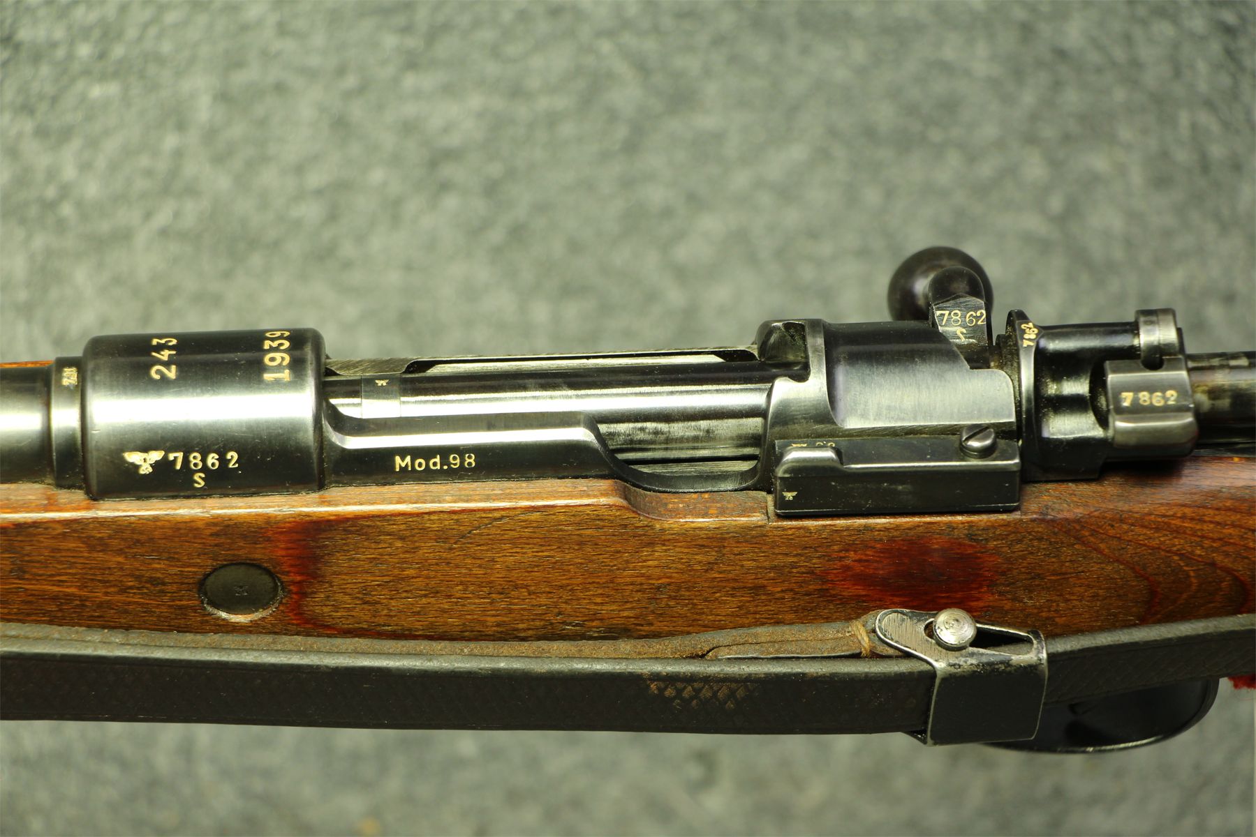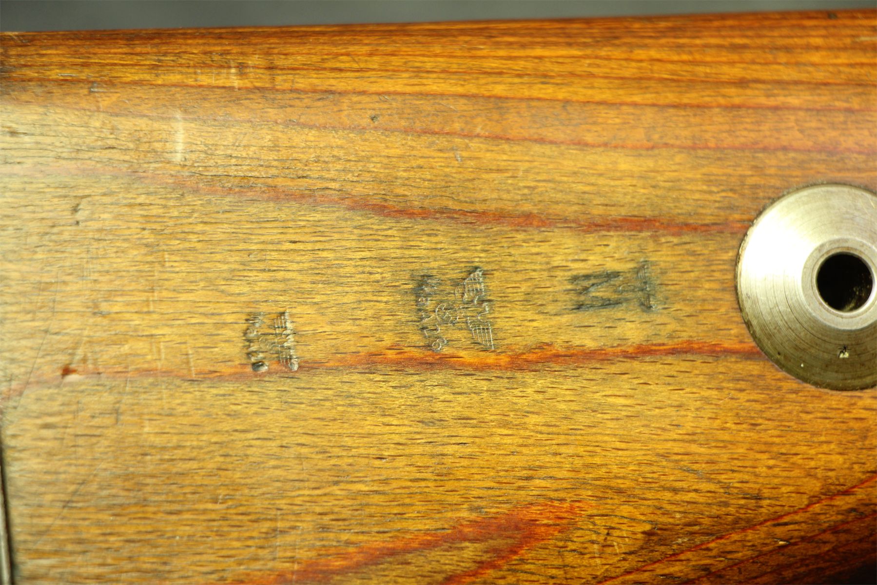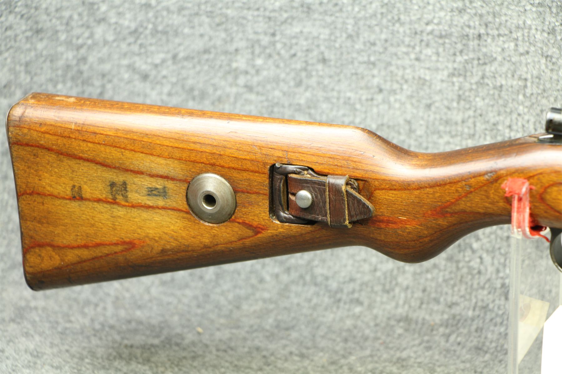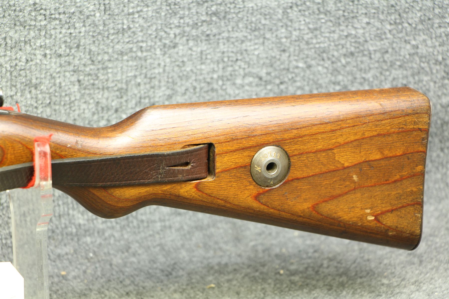 Complete and in issue condition. Nazi stamps. All numbers the same. I have never seen one with the muzzle cap before. Tiny handling marks on the buttstock. Issue sling. No rust.