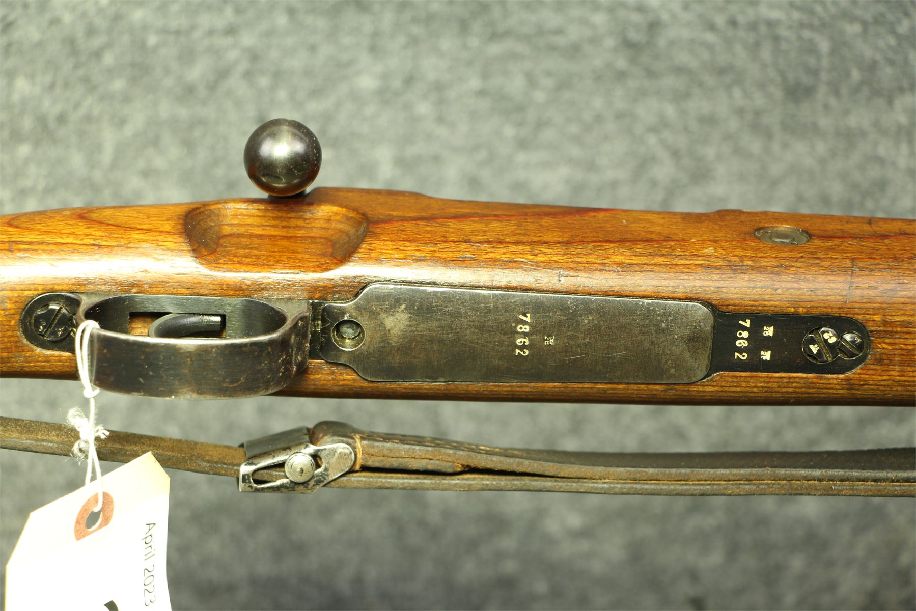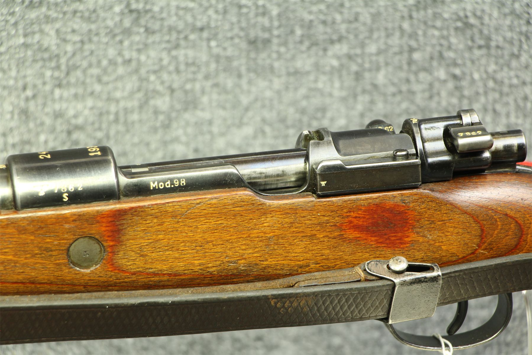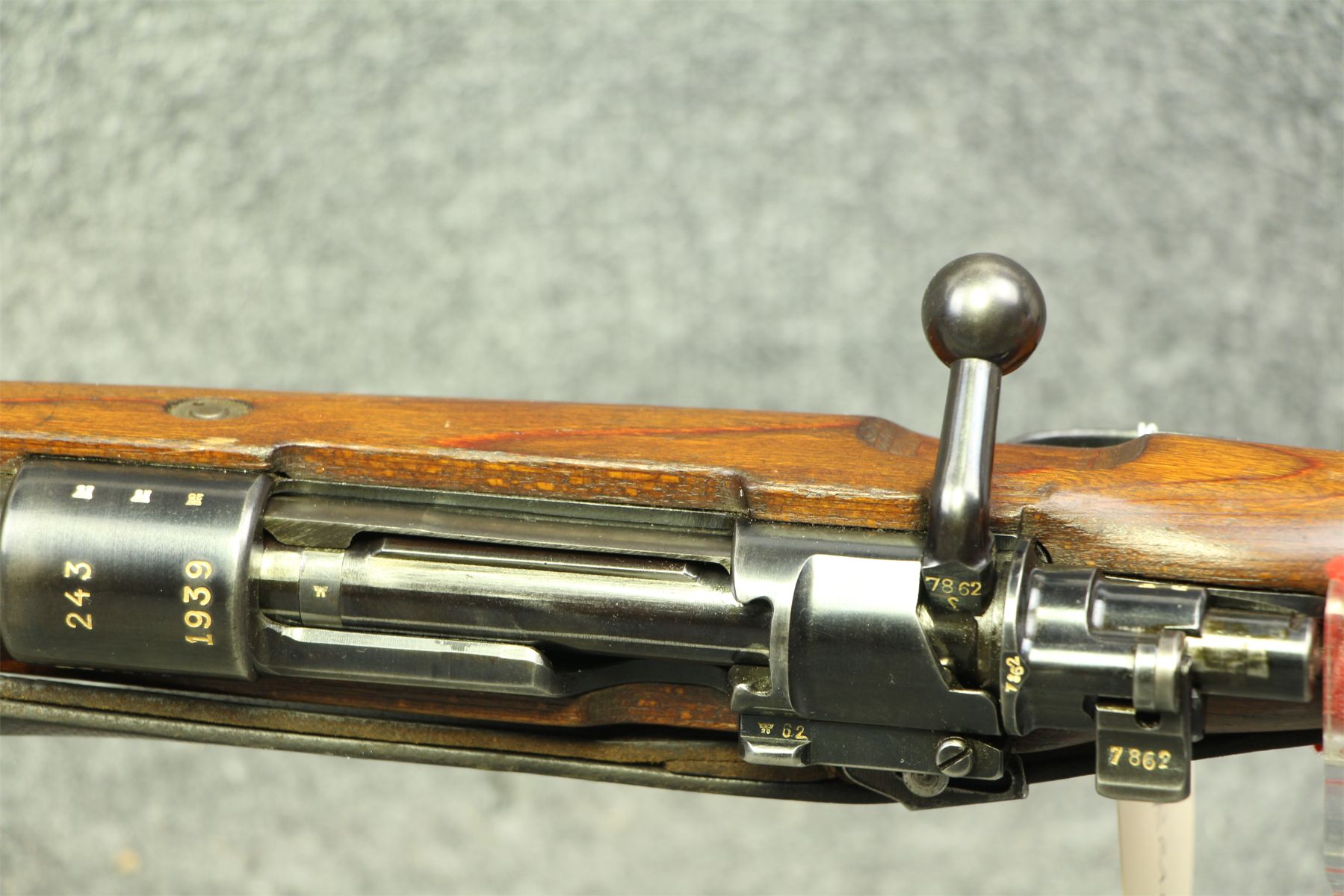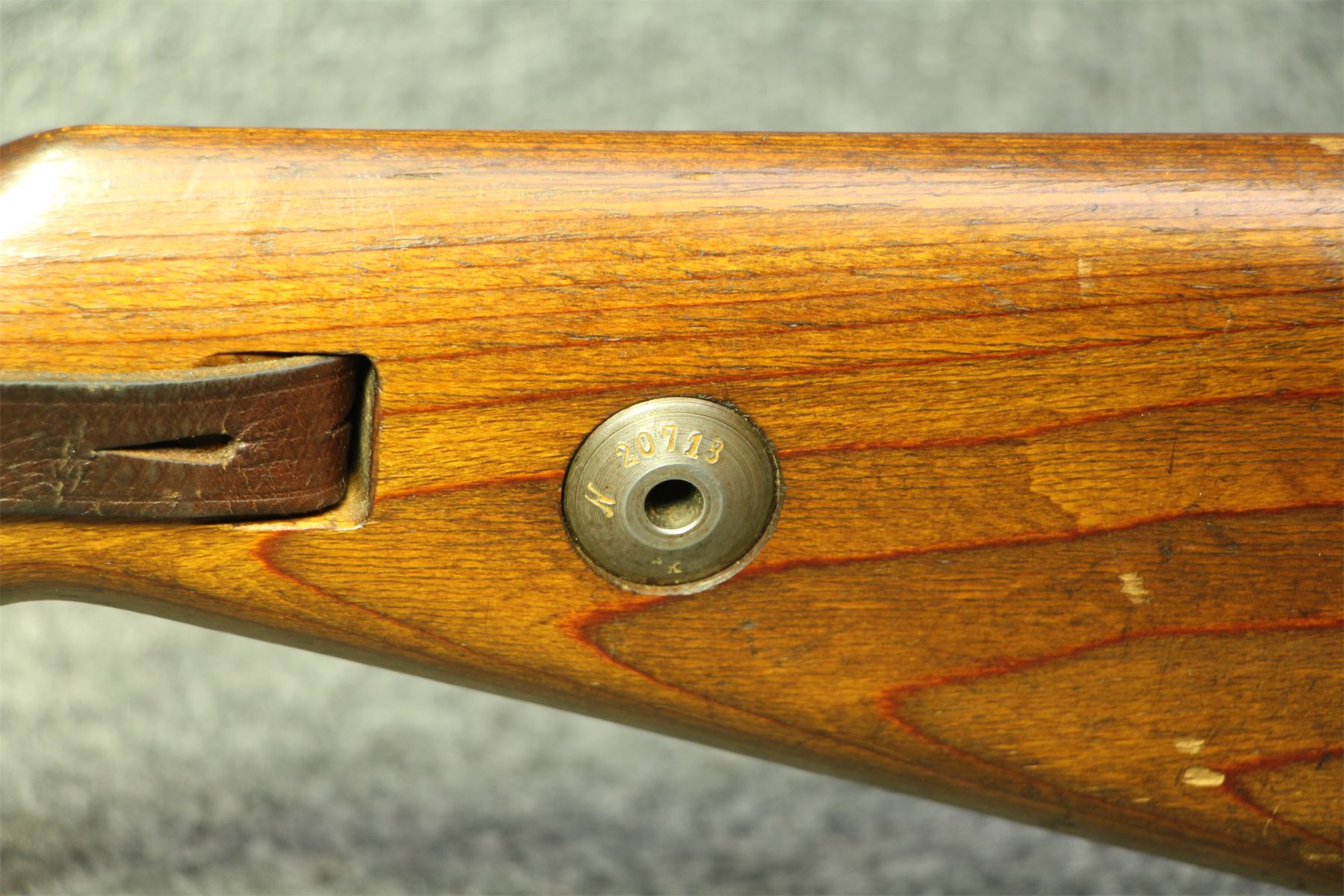 Complete and in issue condition. Nazi stamps. All numbers the same. I have never seen one with the muzzle cap before. Tiny handling marks on the buttstock. Issue sling. No rust.