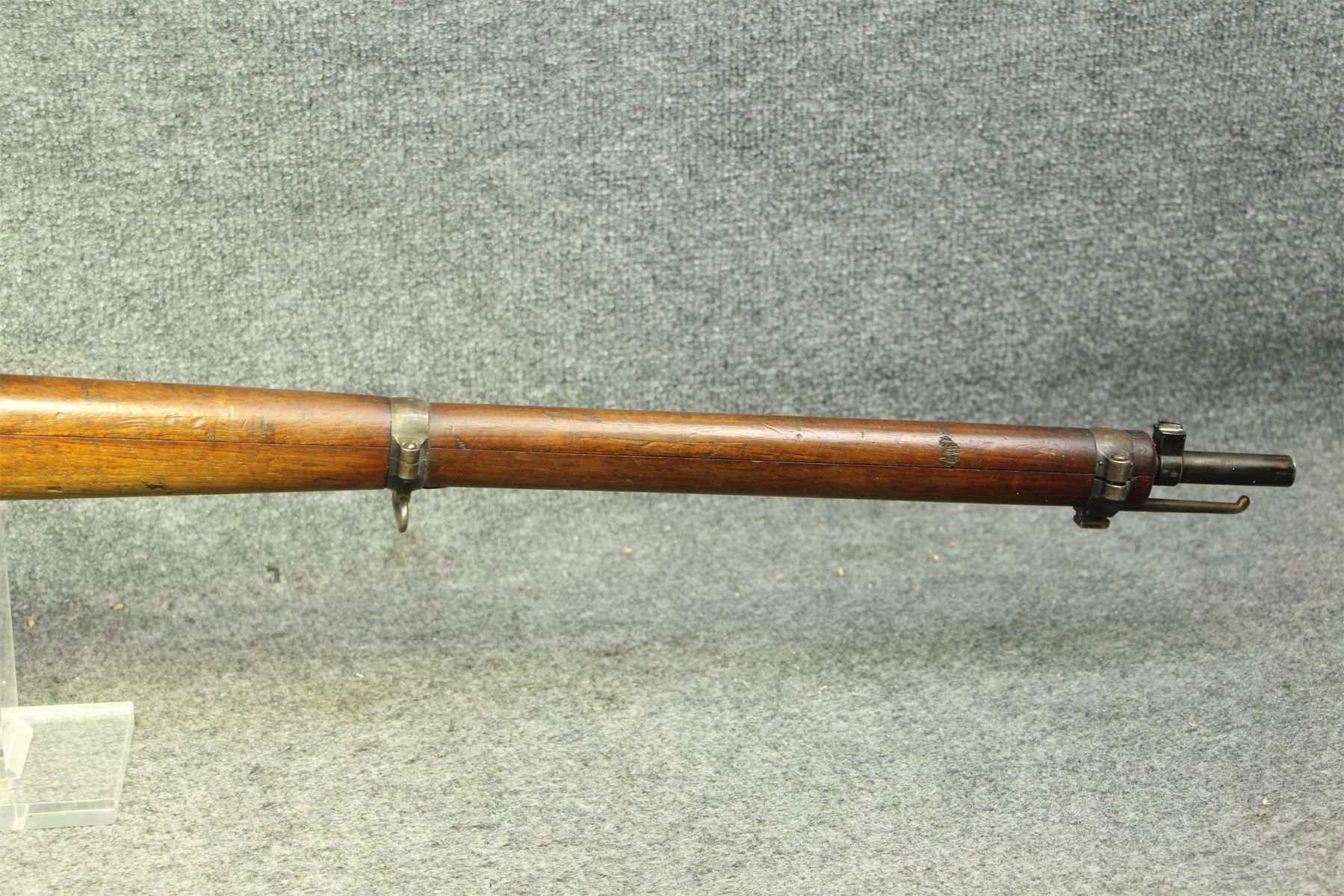 Metal is in very good condition. The stock has many dings and shallow gouges. In complete military order.