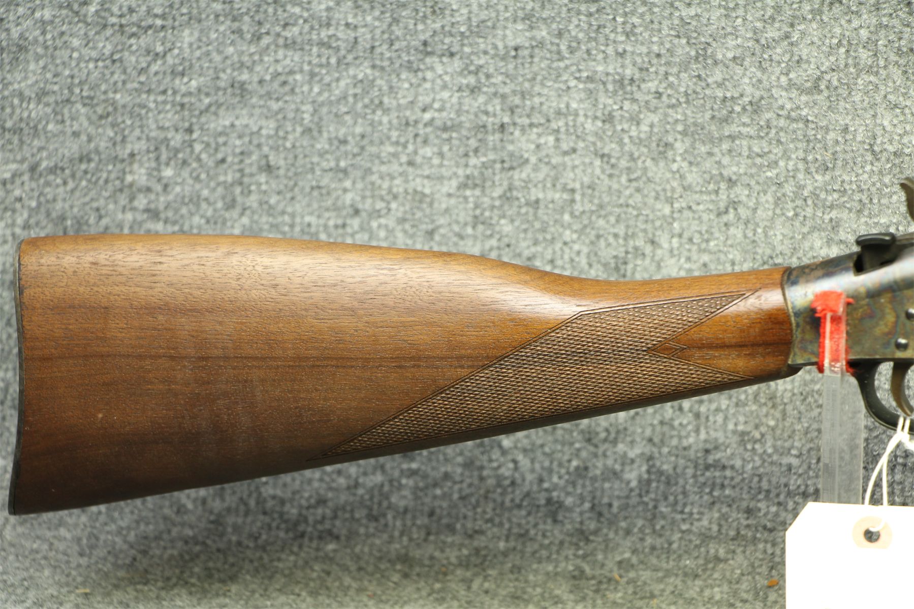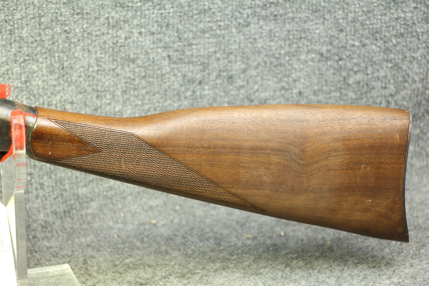 Some minor nicks in the fore-end. The receiver has some shallow rust patches. Peep sights.