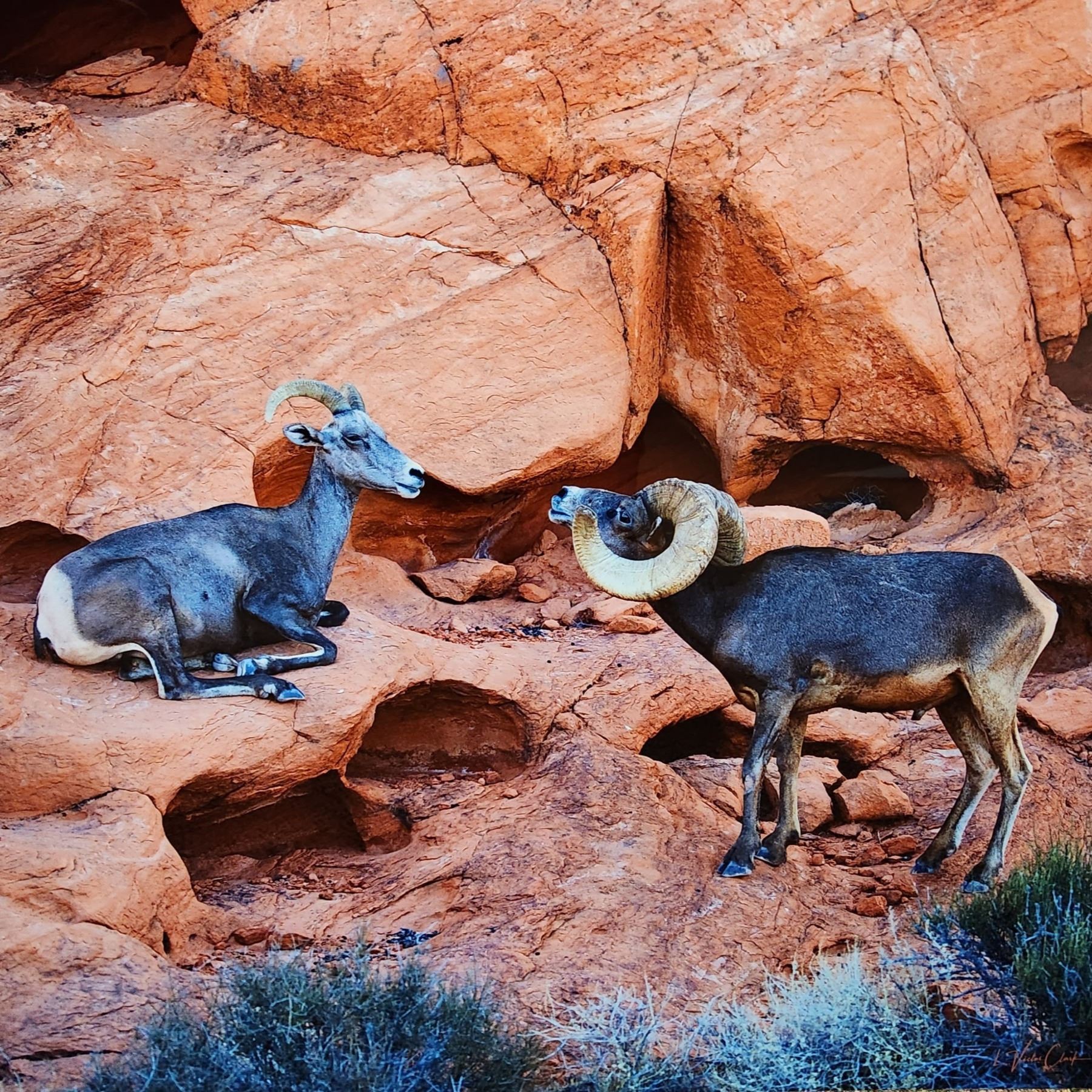 Metal art photo of ram & ewe
