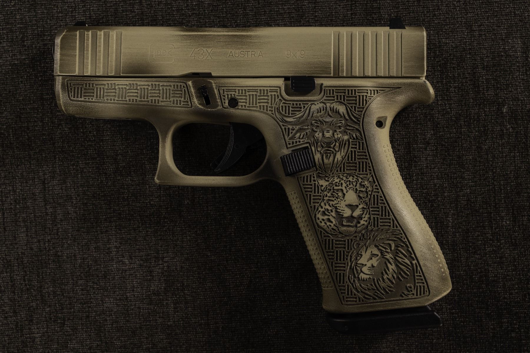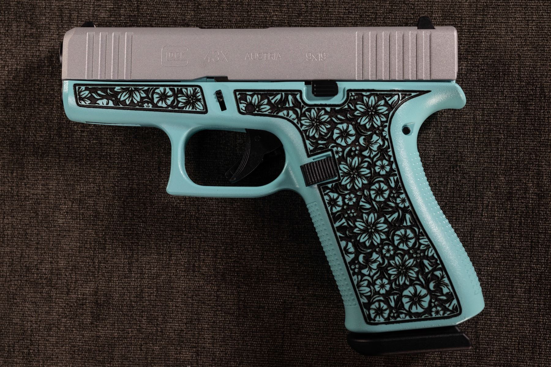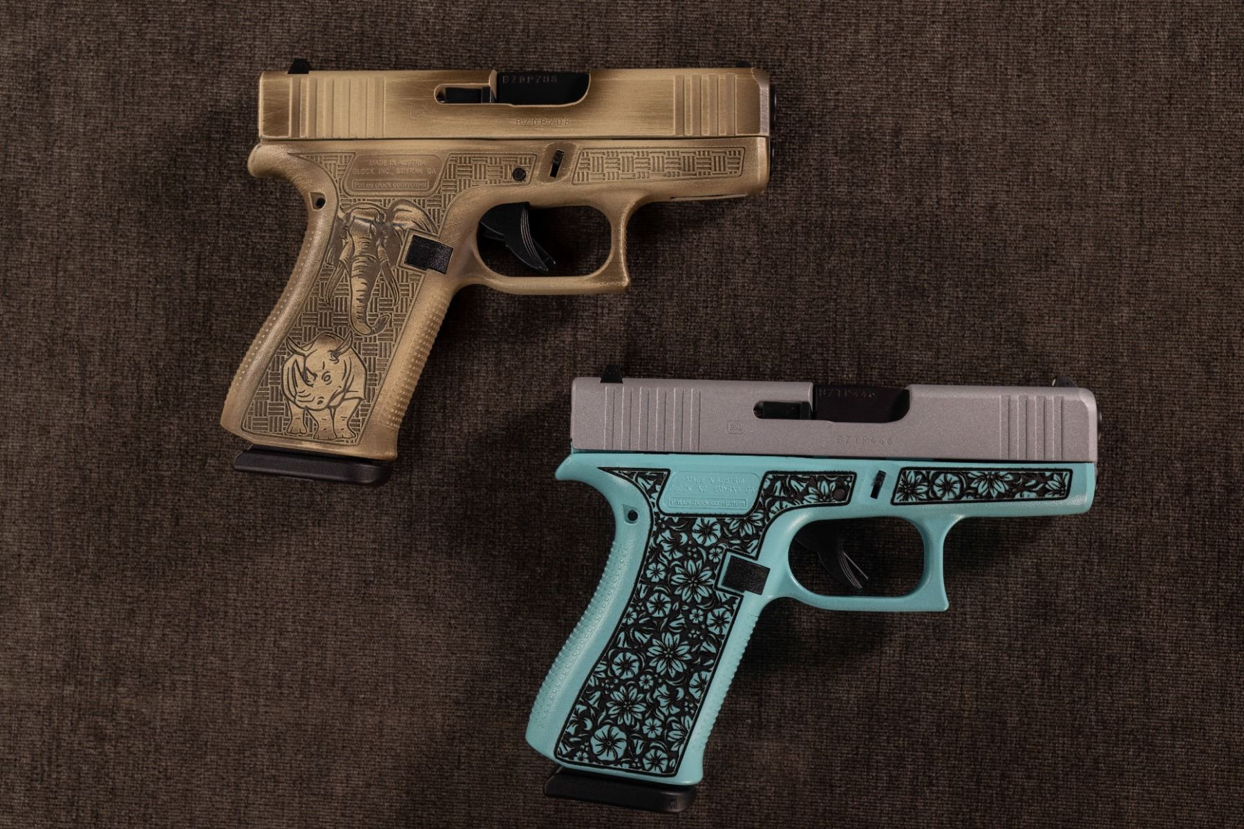 Lot 1 RUSSELL & MARY EDITH STACY: Custom Glock 43X Big Five Pistol in 9mm and Glock 43X Tiffany Blue Pisto