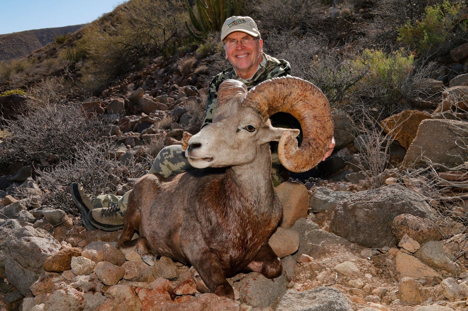 8-day 1x1 Carmen Island Desert bighorn sheep hunt for one hunter and one non-hunter in Mexico - includes any size bighorn. Method of take is rifle or bow. This free-range hunt is available in 2023 or 2024 and may be upgraded by adding hunters at $75,000 or non-hunters at $450/day. Transportation during the hunt is mostly by foot and boat with hunting done by spot & stalk. This package includes field prep, RT transfers from Loreto International Airport, first-class lodge accommodations, drinks and gourmet meals. Not included are dip & pack service, transportation to shipper, permit fee and gratuities. Sergio Jimenez or Ricardo Garza, 011 52 81 8287 3375, Keramos Poniente 225, Colonia del Prado, Monterrey, Nuevo Leon 64410, MEXICO, sjimenez@vitro.com, rgarzava@vitro.com, MexicoHunts.Com.