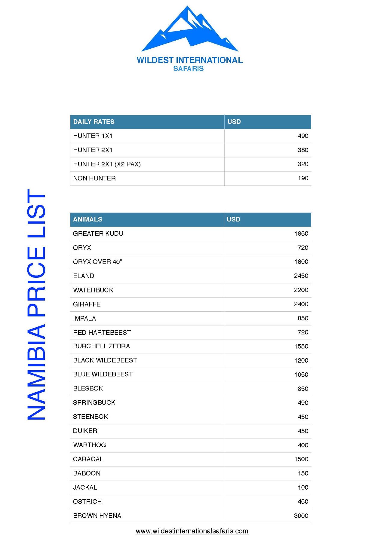 This deposit will be credit towards: Government tags per trophy, Extra Trophies, Gun Rental, Ammunition, Transfers.