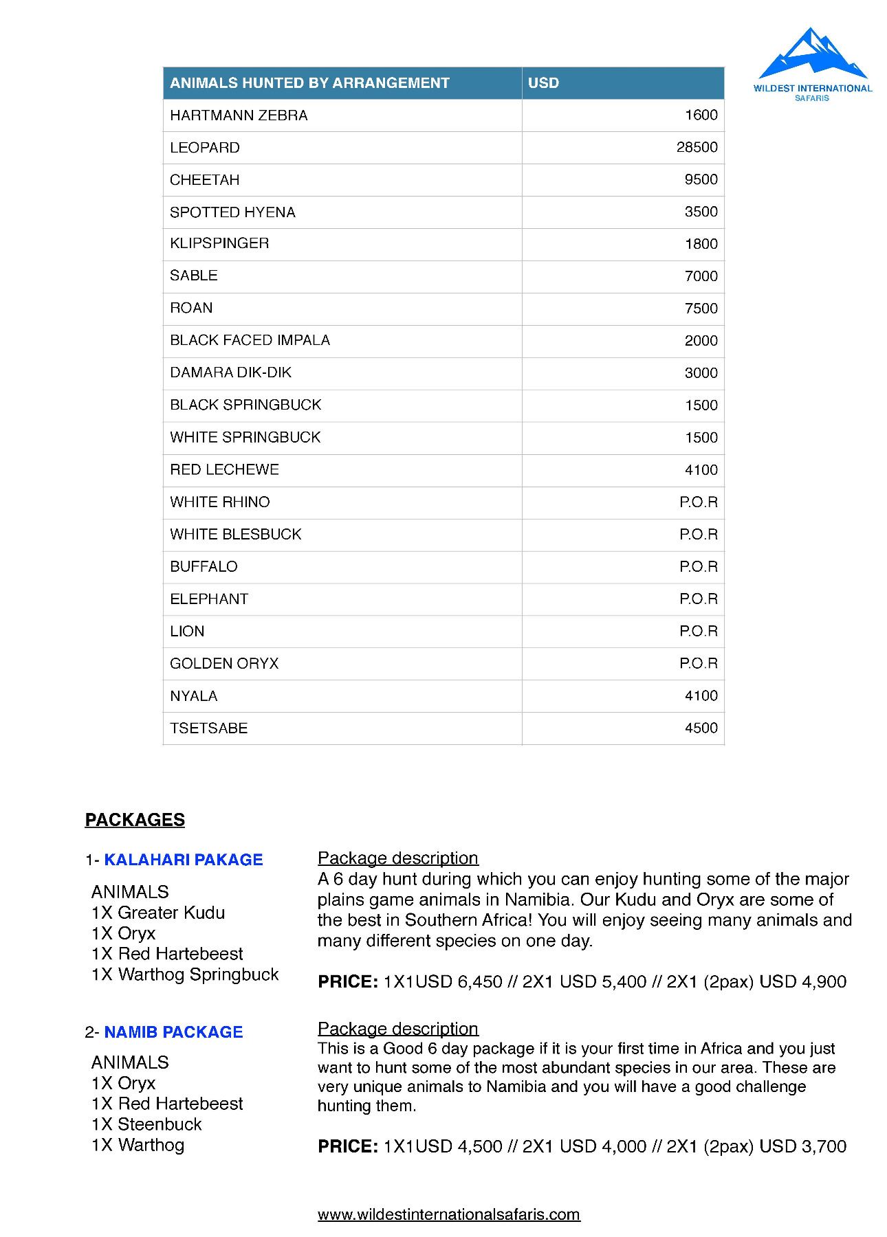 Important NOTE: Our program requires that each of the 3 hunters takes at least 1 extra trophy outside the donation package. The donation is only valid for 3 hunters.