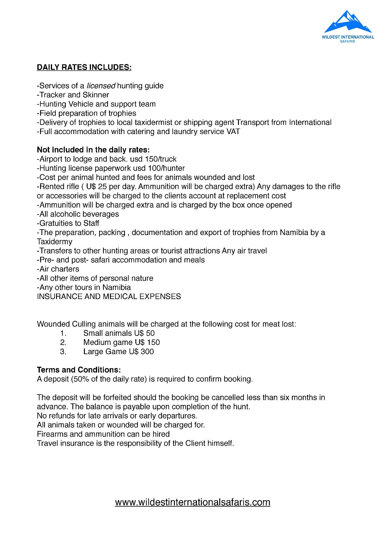 (If the hunter doesn't apply for the Tags there is a chance to be limit on there number of trophies to be harvest.) Balance must be paid 45 days before arrival. Trophies that are not hunted will be refund.