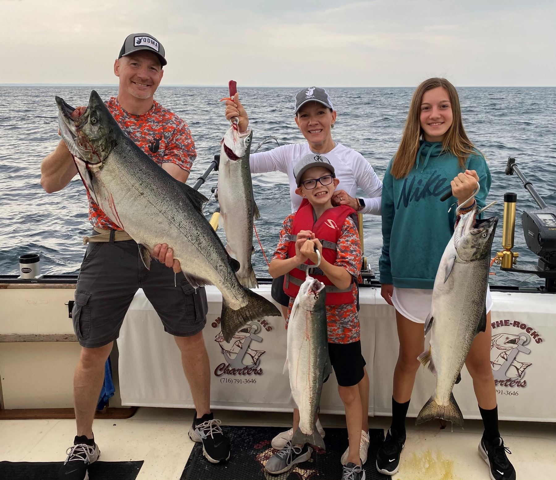This is a 4hour / 4person fishing charter for Salmon and Trout aboard the "On-The-Rocks" 39ft SeaRay fishing vessel. We fish out of Bootleggers Cove Marina in Wilson, NY on Lake Ontario which is located 12 miles from the mouth of the Niagara River. Some of the best King Salmon fishing in the world can be found near the well know Niagara Bar area. Niagara Falls is approximately 20 miles away. All required fishing gear and tackle will be provided. A NYS Fishing License must be purchased prior to fishing. Trip will be scheduled between April 1, 2023 and Oct. 15, 2023.