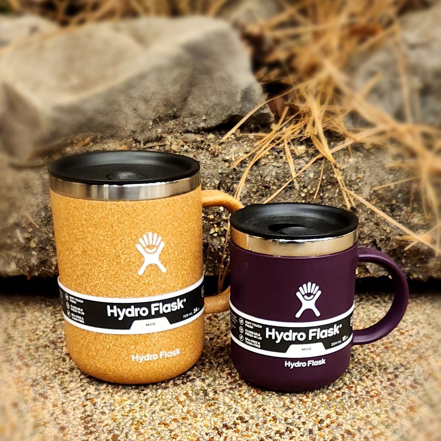 Set of 2 mugs: 24oz cork & 12oz purple