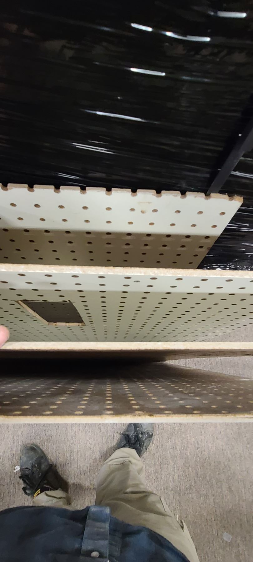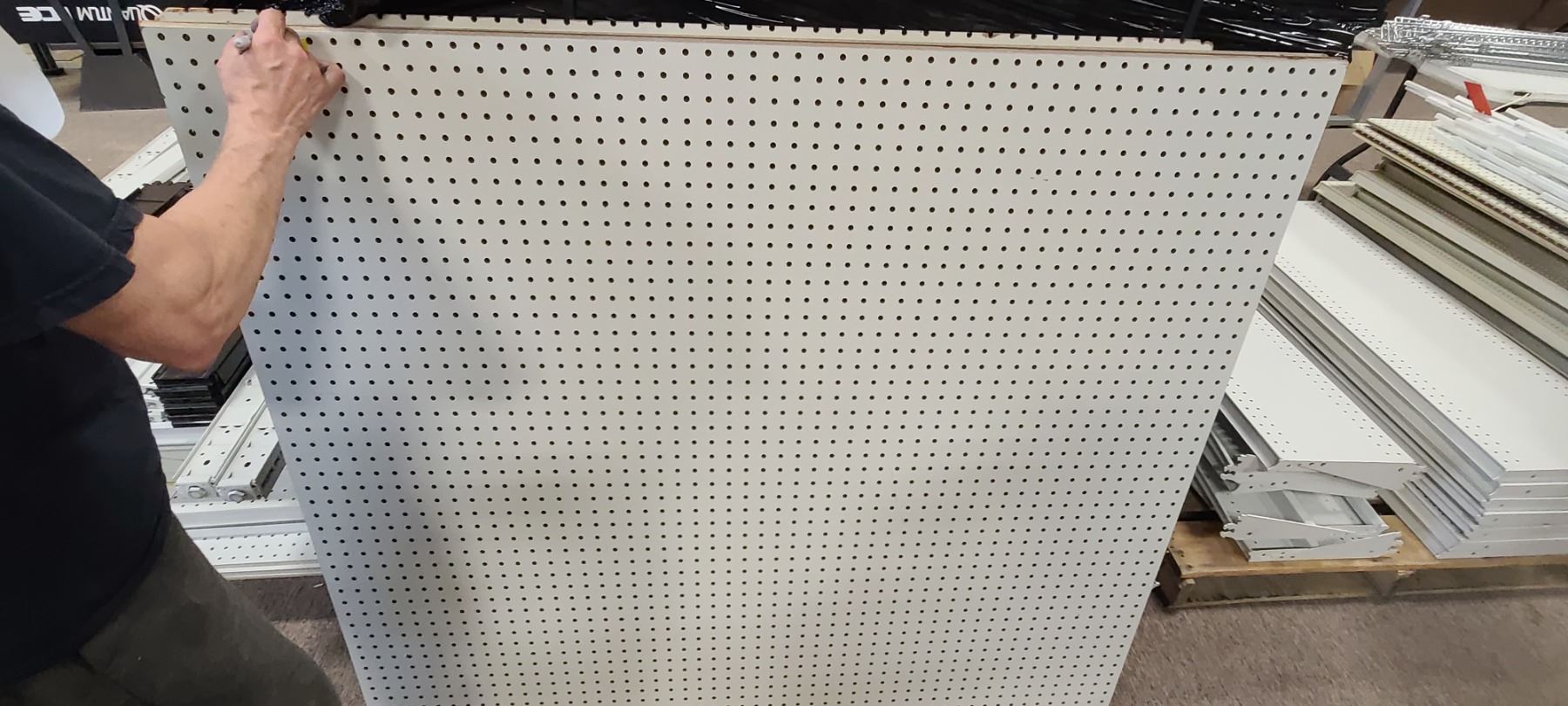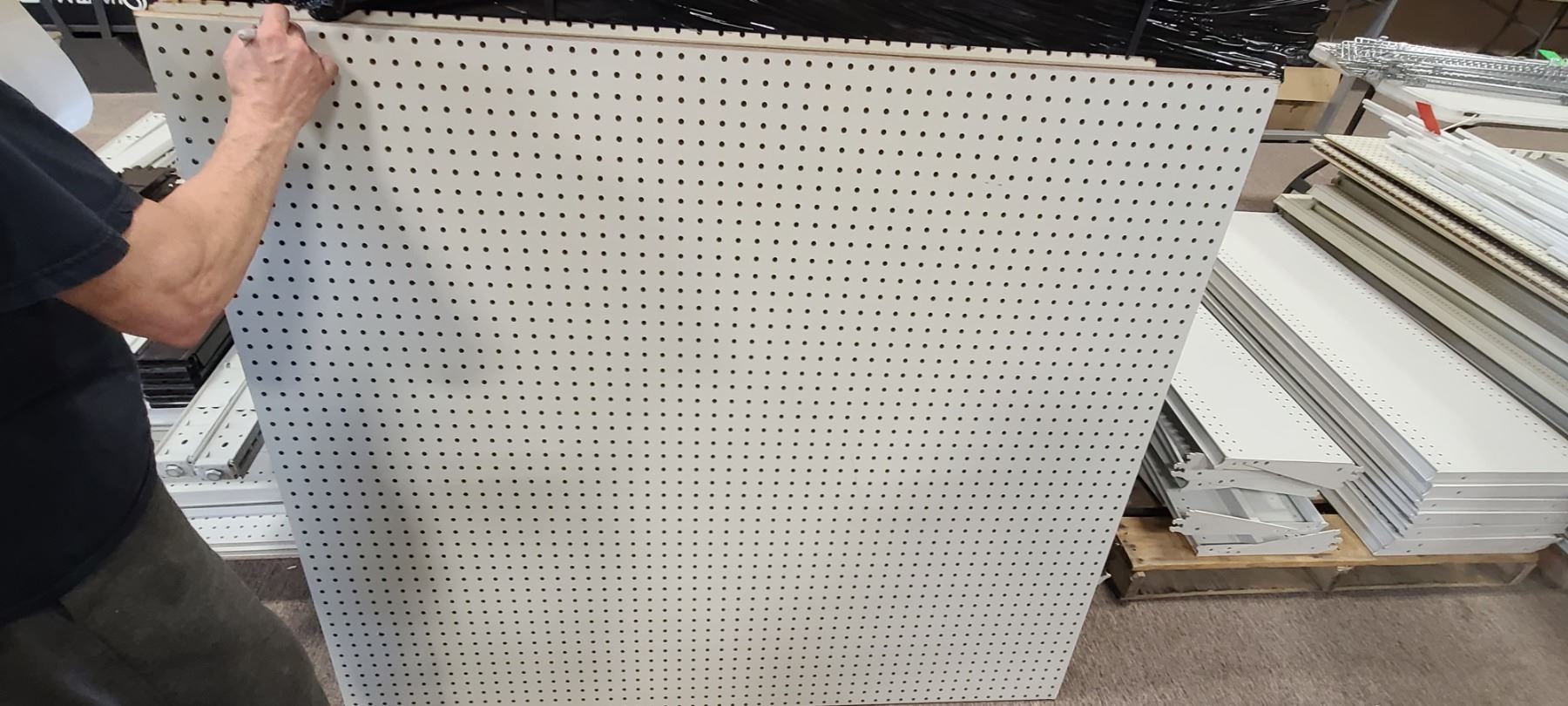 FOUR PIECES OF PEGBOARD 53 1/2 " X 47" AND FIVE PIECES OF GONDOLA BACK BOARD (NON PEG BOARD) 55" X 34 1/2"