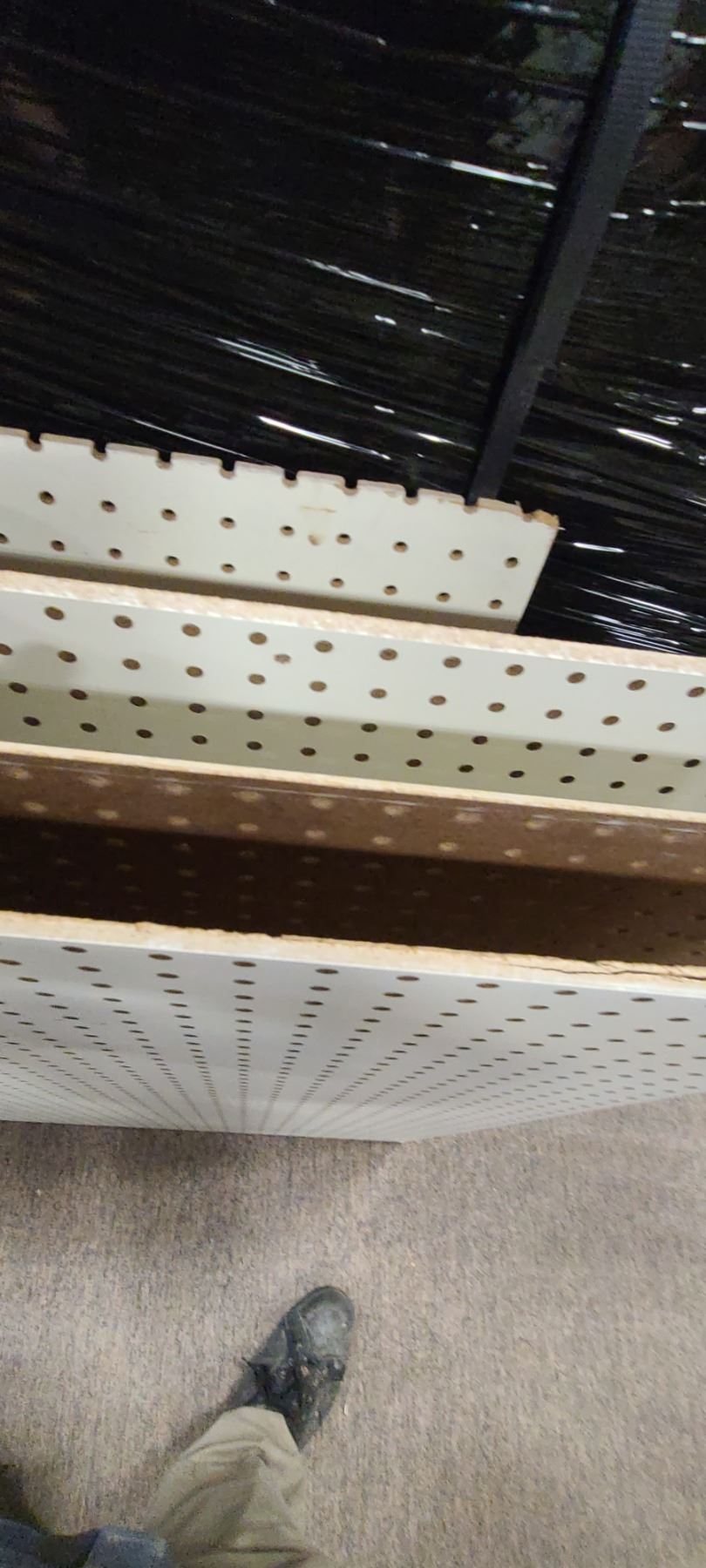 Lot 32 FOUR PIECES OF PEGBOARD 53 1/2 " X 47" AND FIVE PIECES OF GONDOLA BACK BOARD (NON PEG BOARD) 55" X 3