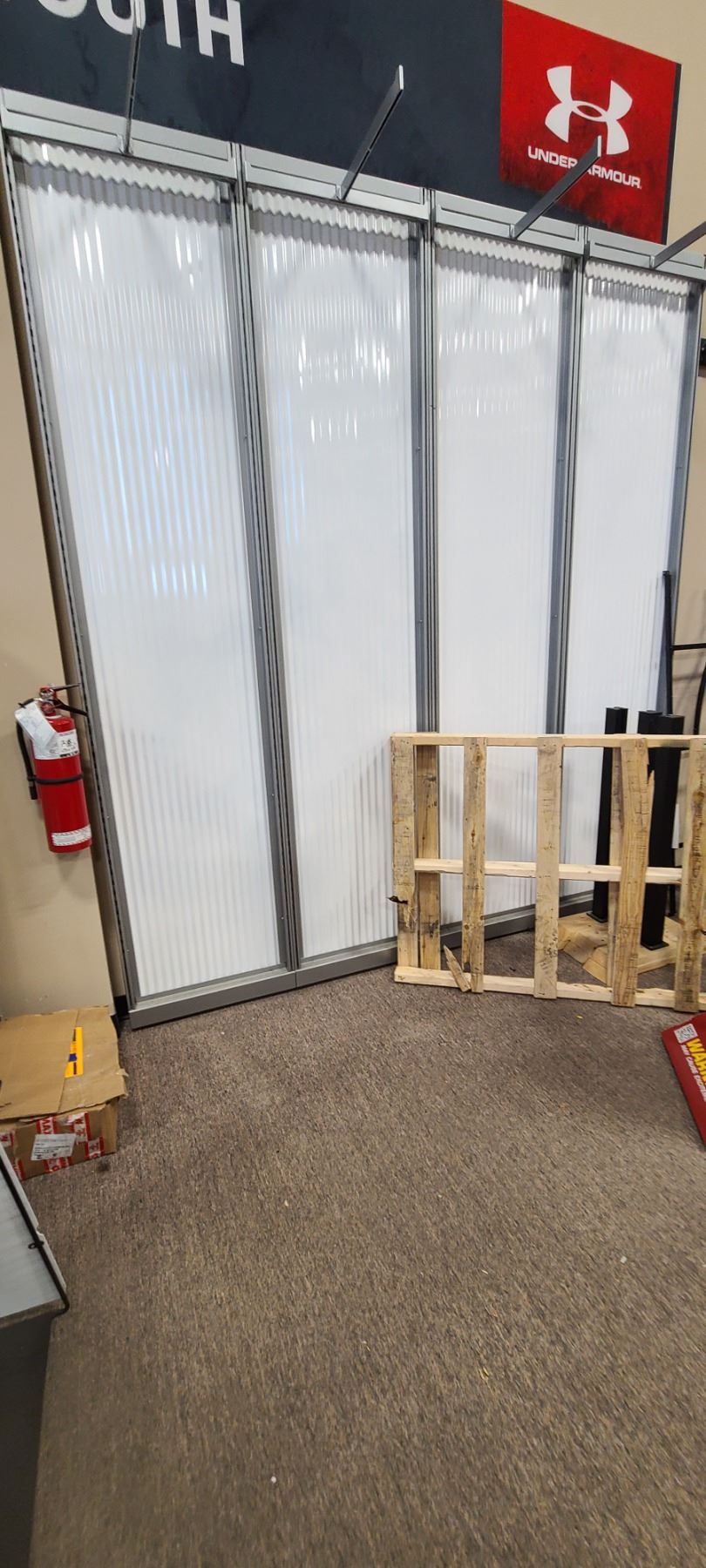 QTY 4 SECTIONS OF UNDER ARMOUR WALL SHELVING SYSTEM 24" X 9' 3"