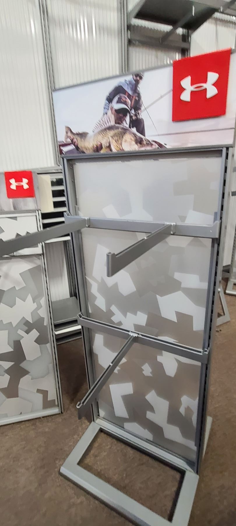 UNDER ARMOUR DISPLAY/RACK/SHELVING UNIT 70' X 25" X 25" COMES WITH TWO CROSS ARMS AND THREE FACE OUT PEG/BARS