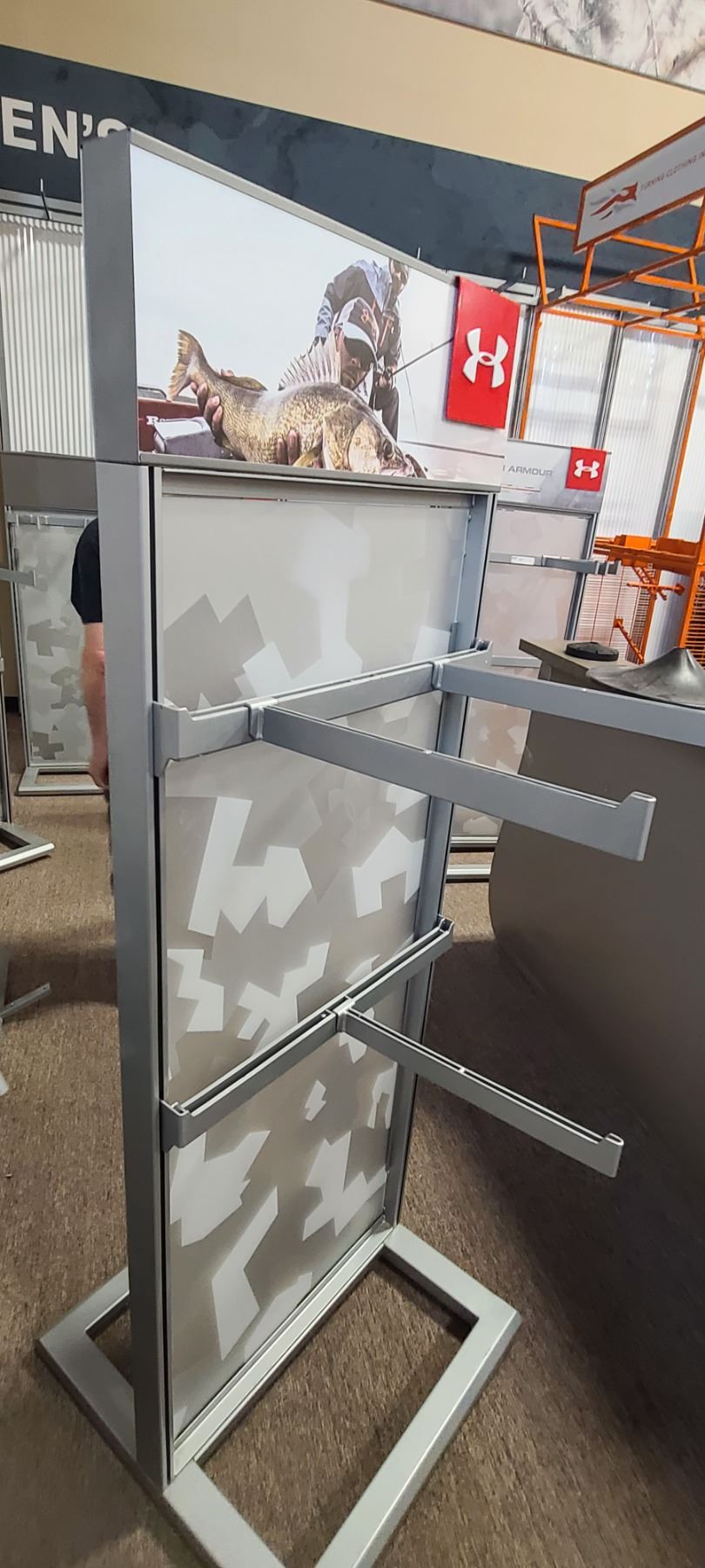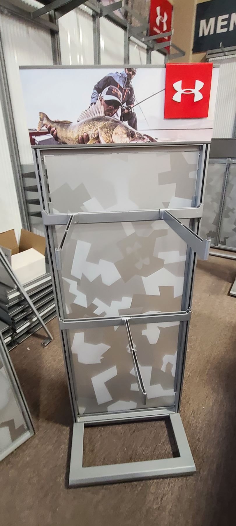 UNDER ARMOUR DISPLAY/RACK/SHELVING UNIT 70' X 25" X 25" COMES WITH TWO CROSS ARMS AND THREE FACE OUT PEG/BARS