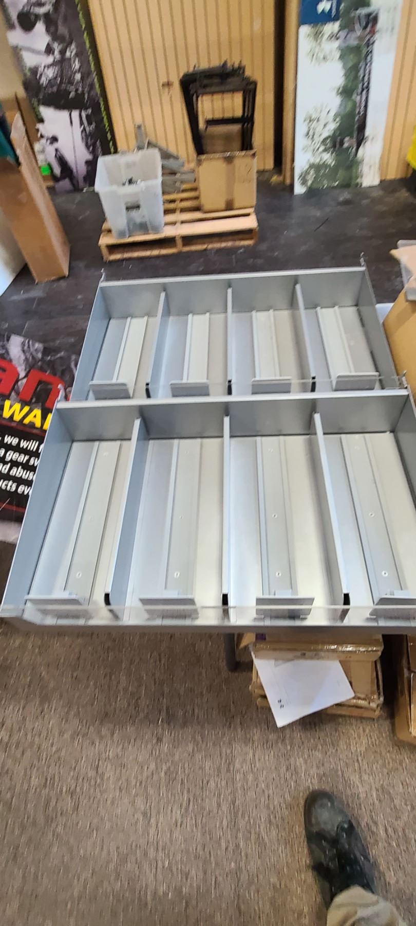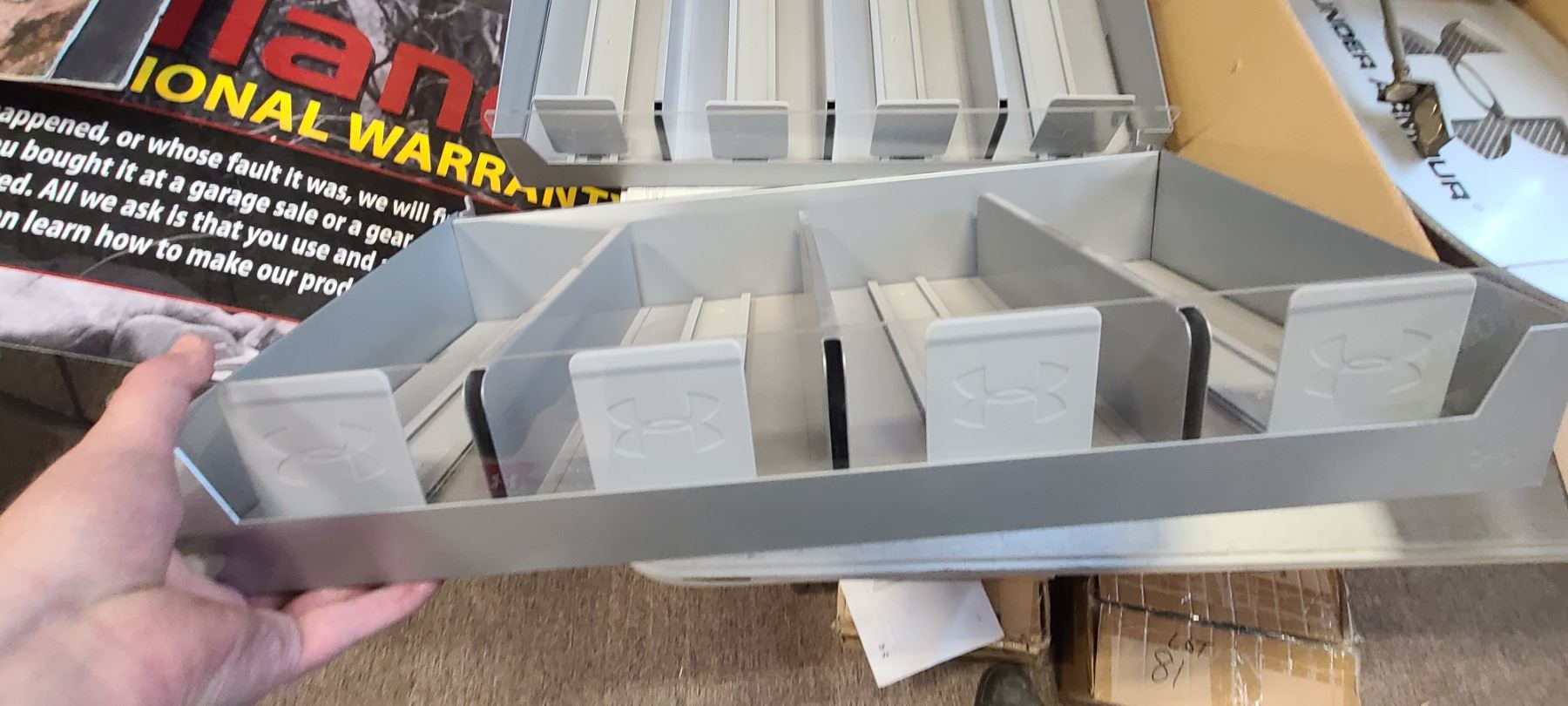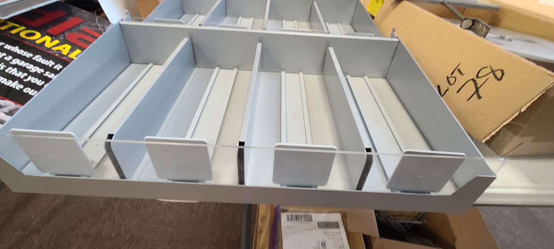 TWO UNDER ARMOUR SELF FRONTING DISPLAY SHELVES