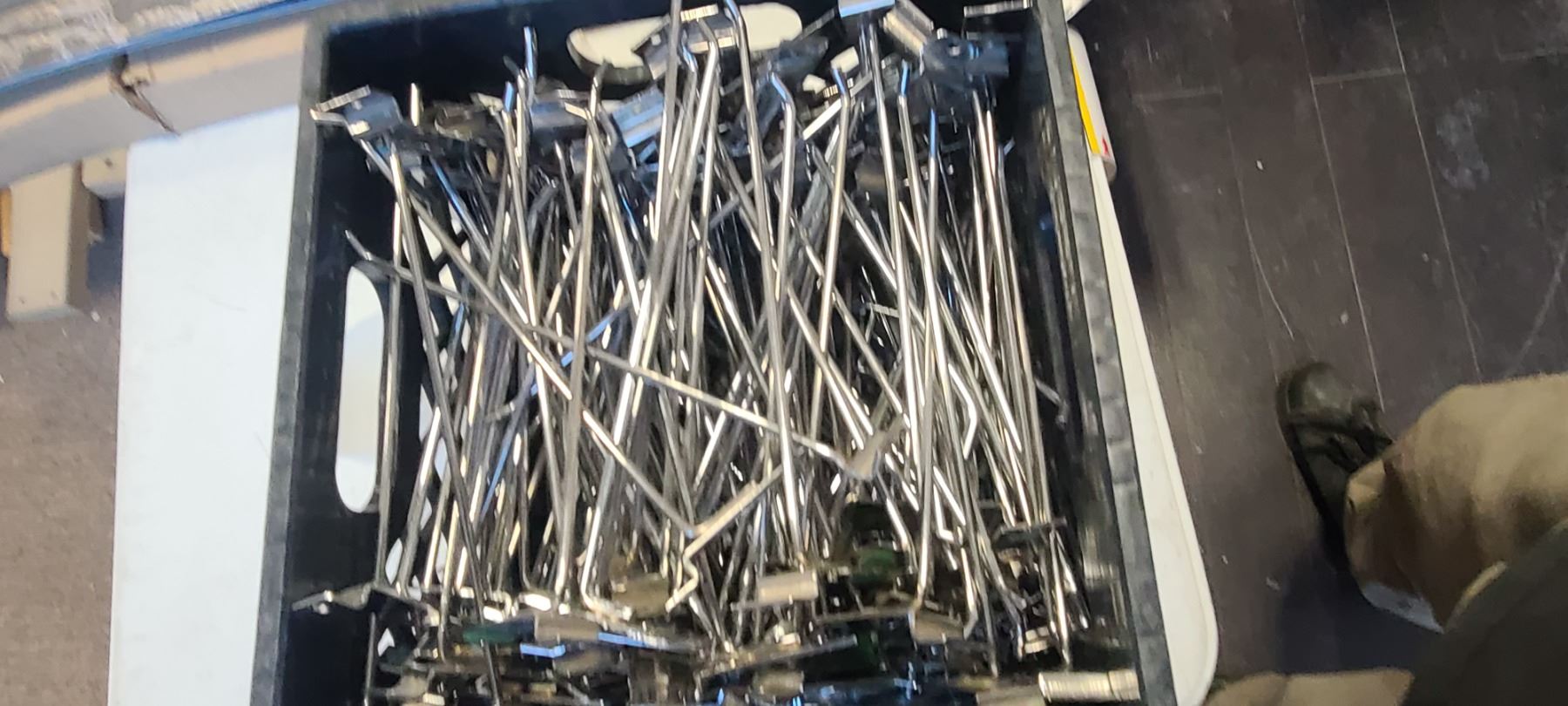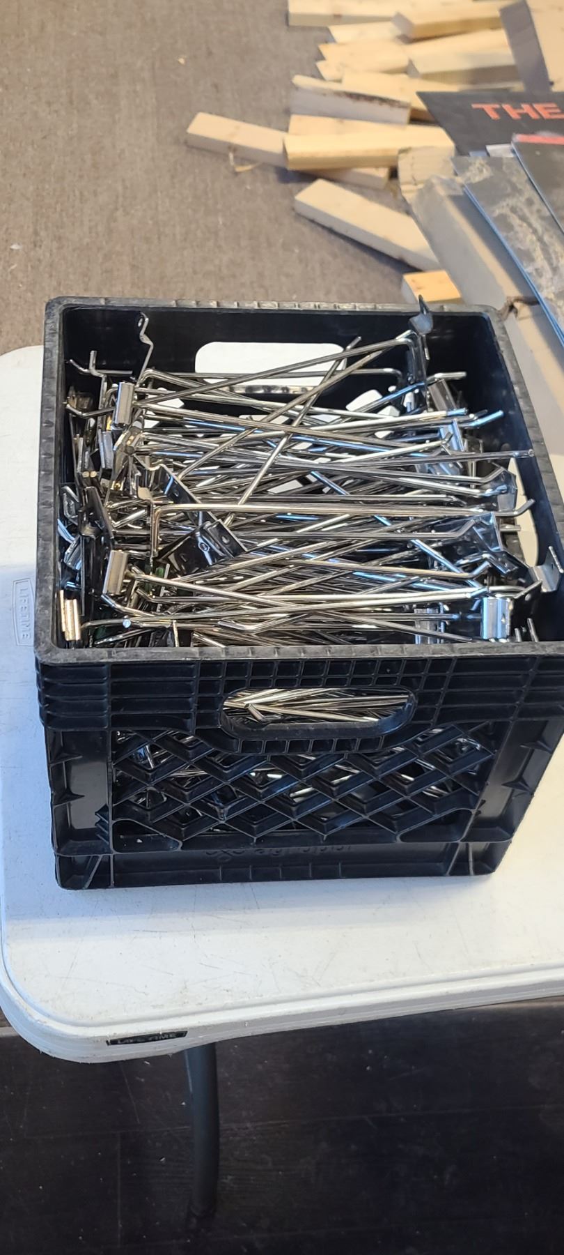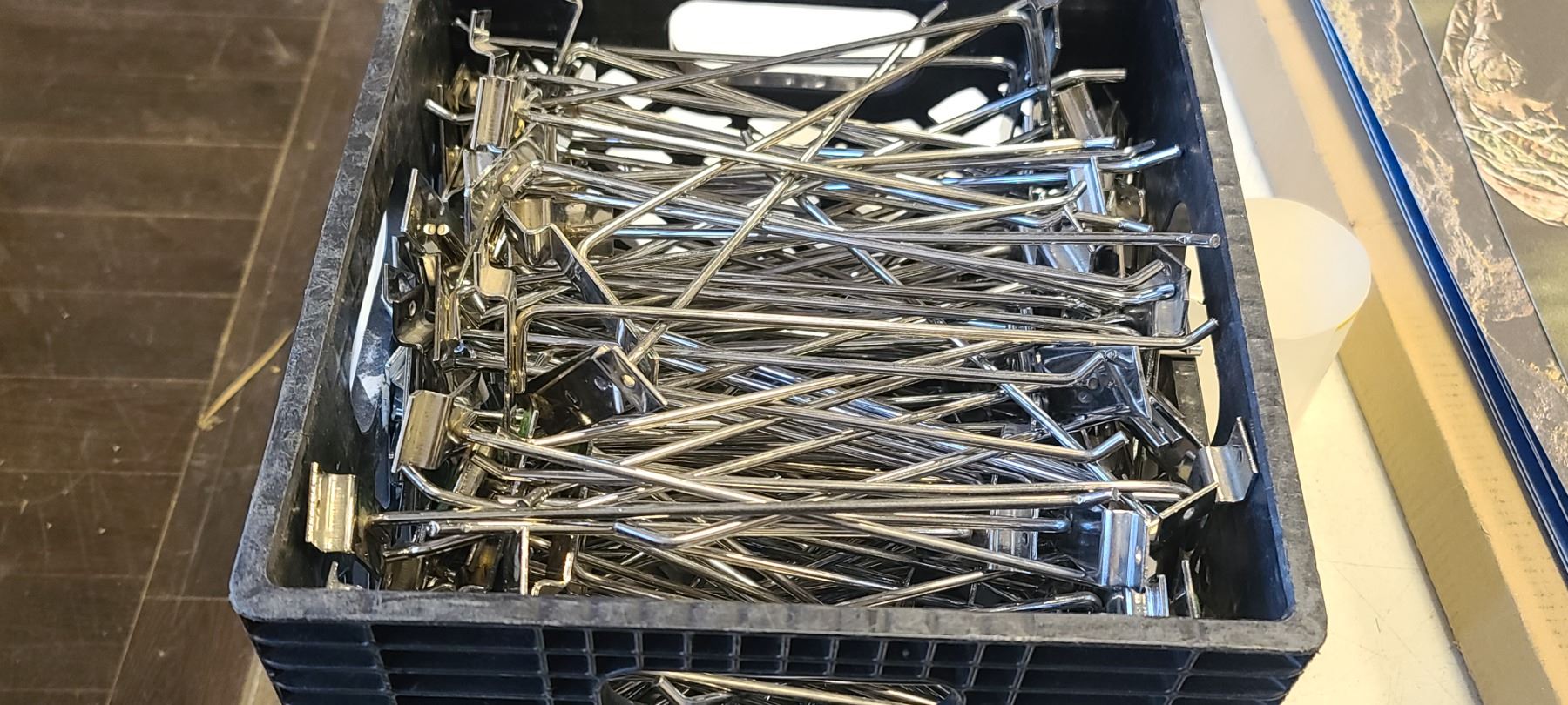 Lot 161 ONE CONTAINER OF 10" PEG/HOOK/HANGERS FOR SLOT BOARD QTY UNKNOWN