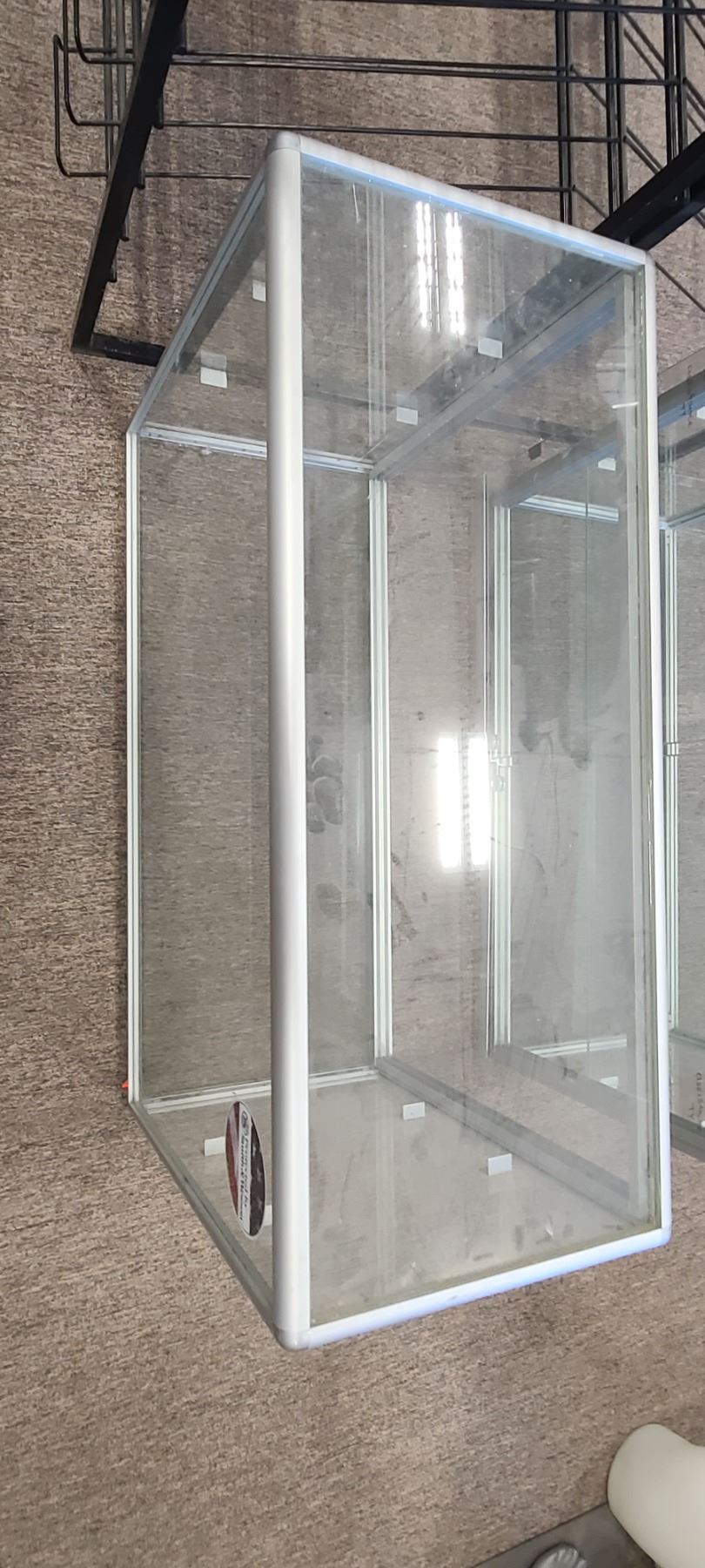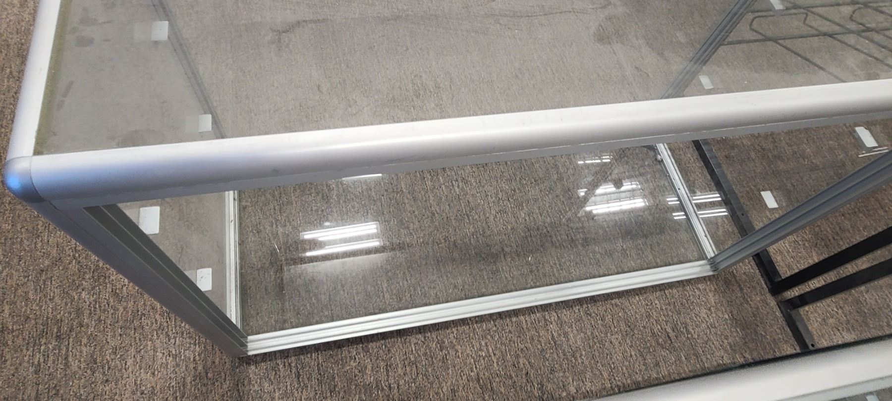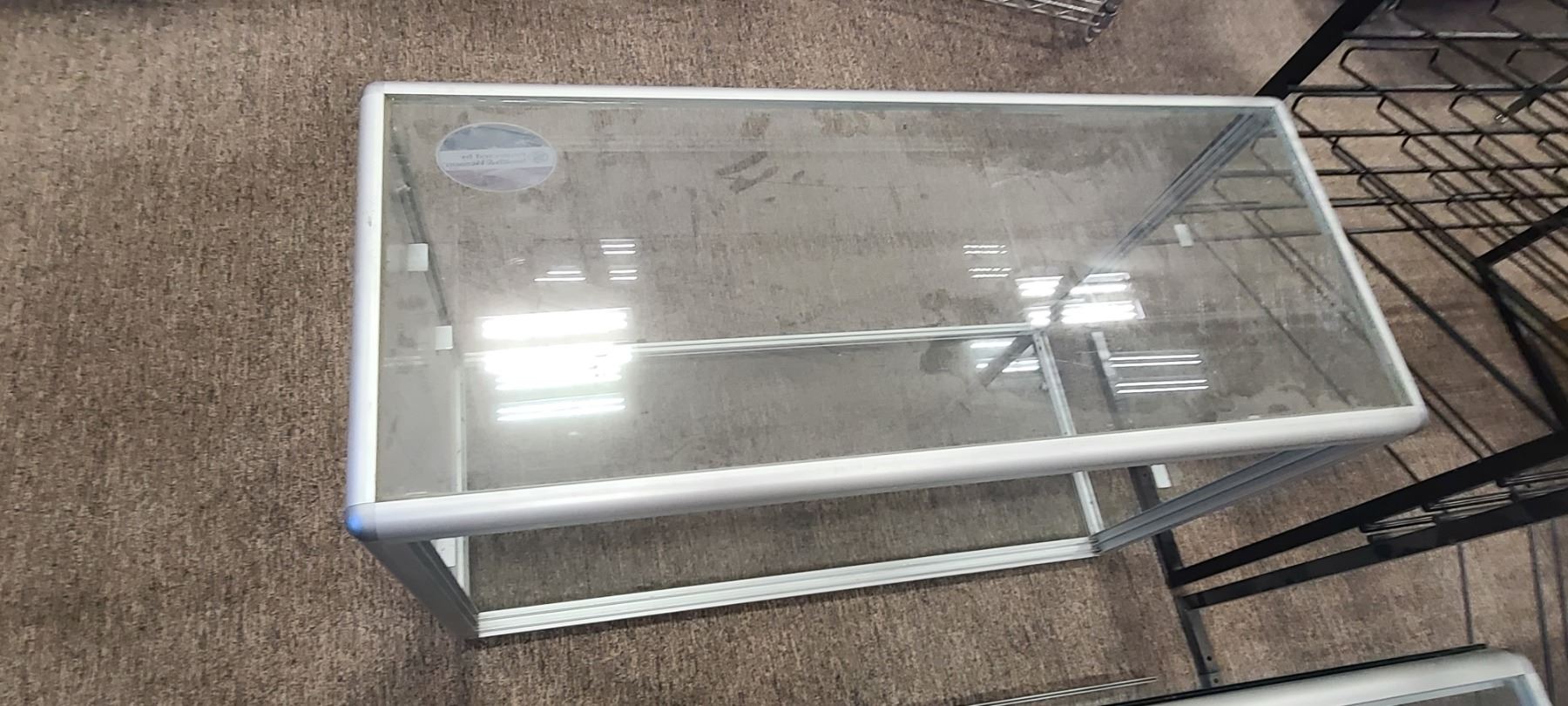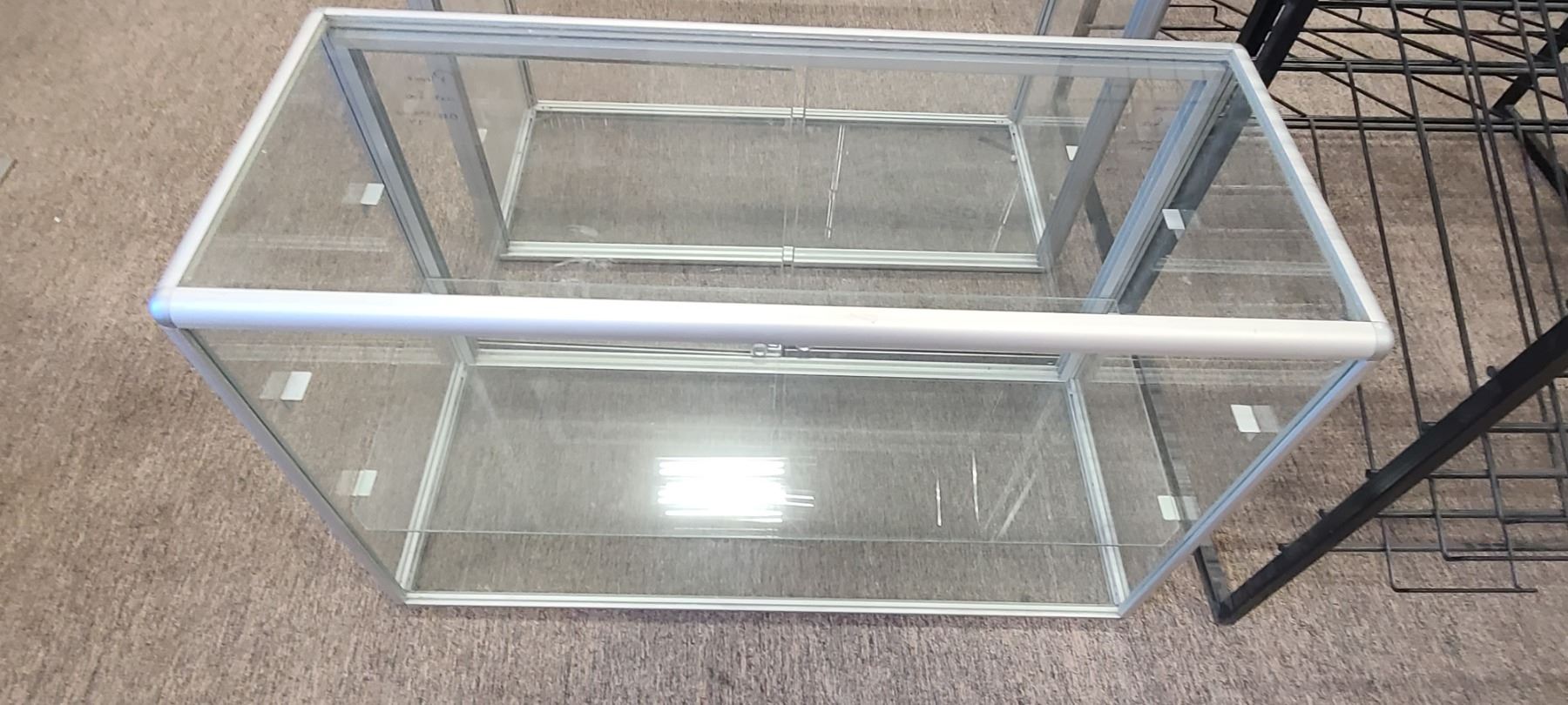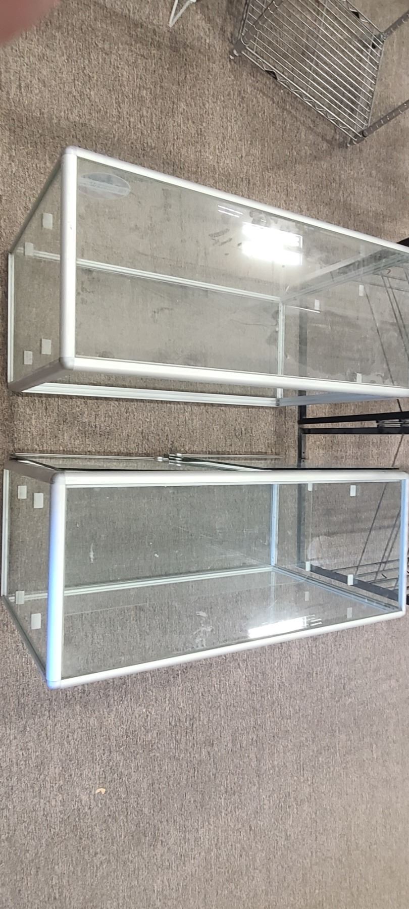 TWO GLASS DISPLAY CASES NO DOORS, ONE SHELF IN ONE. 38" X 24" X 16: