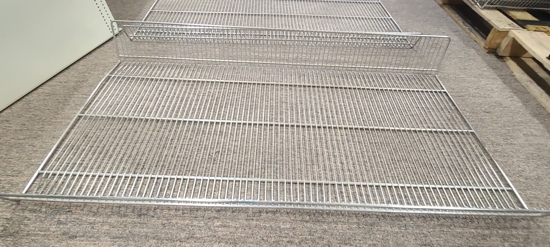 QTY 4 STAINLESS STELL PRODUCT BASKETS FOR SHELVING 4' X 26" X 6"