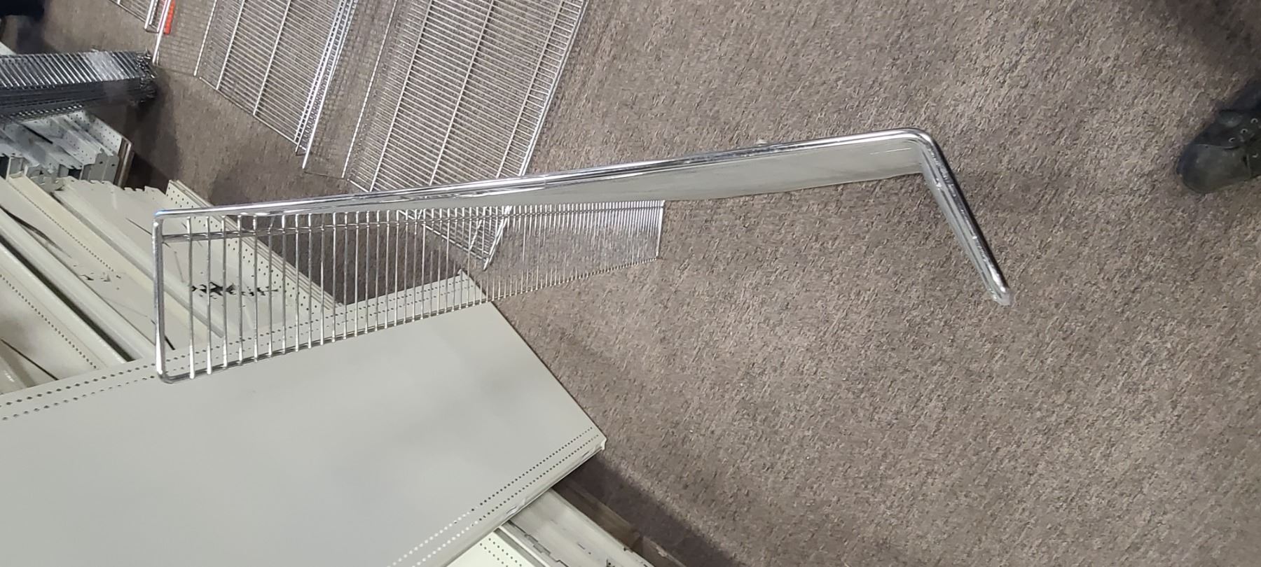 Lot 212 QTY 4 STAINLESS STELL PRODUCT BASKETS FOR SHELVING 4' X 26" X 6"
