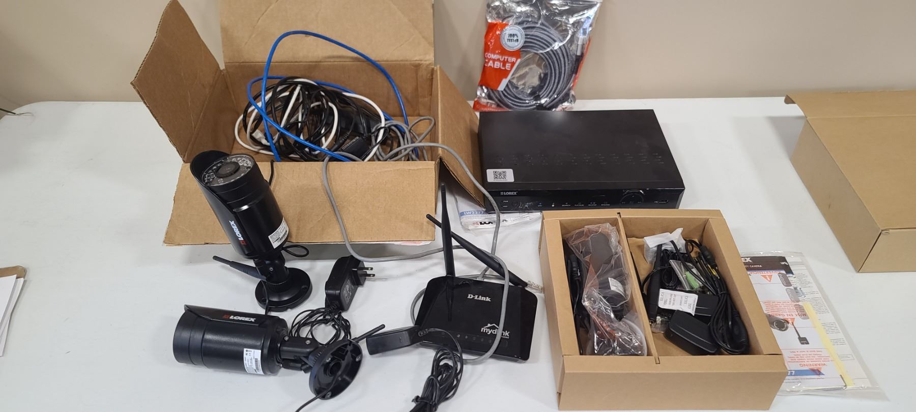 THREE LOREX WIRLESS SECURITY CAMERAS AND PVR UNIT - COMES WITH HDMI CORD ND D-LINK ROUTER